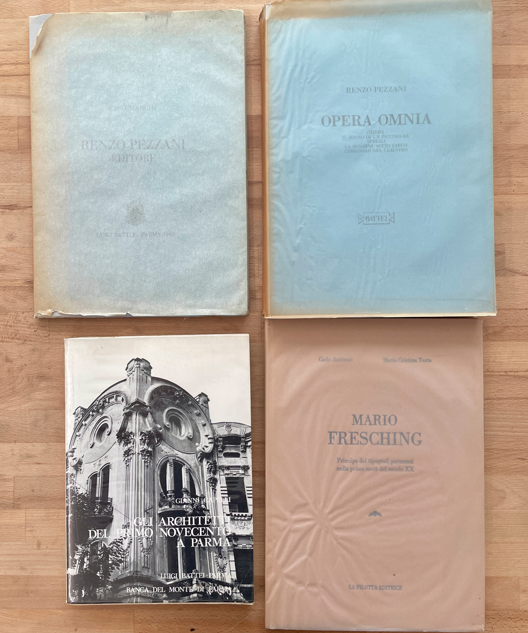 - Mario Fresching. principe dei tipografi parmensi nella prima metà del secolo XX, 1994 (a cura di Carlo Antinori e Maria Cristina Testa; La Pilotta Editrice, in 500 copie numerate)