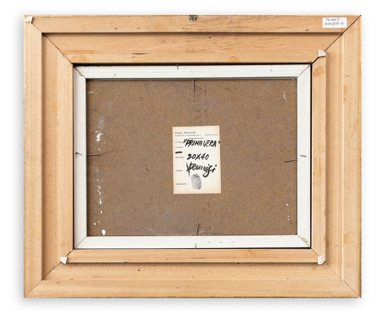 Etichetta dell'Artista recante firma, titolo, misure e impronta digitale al retro