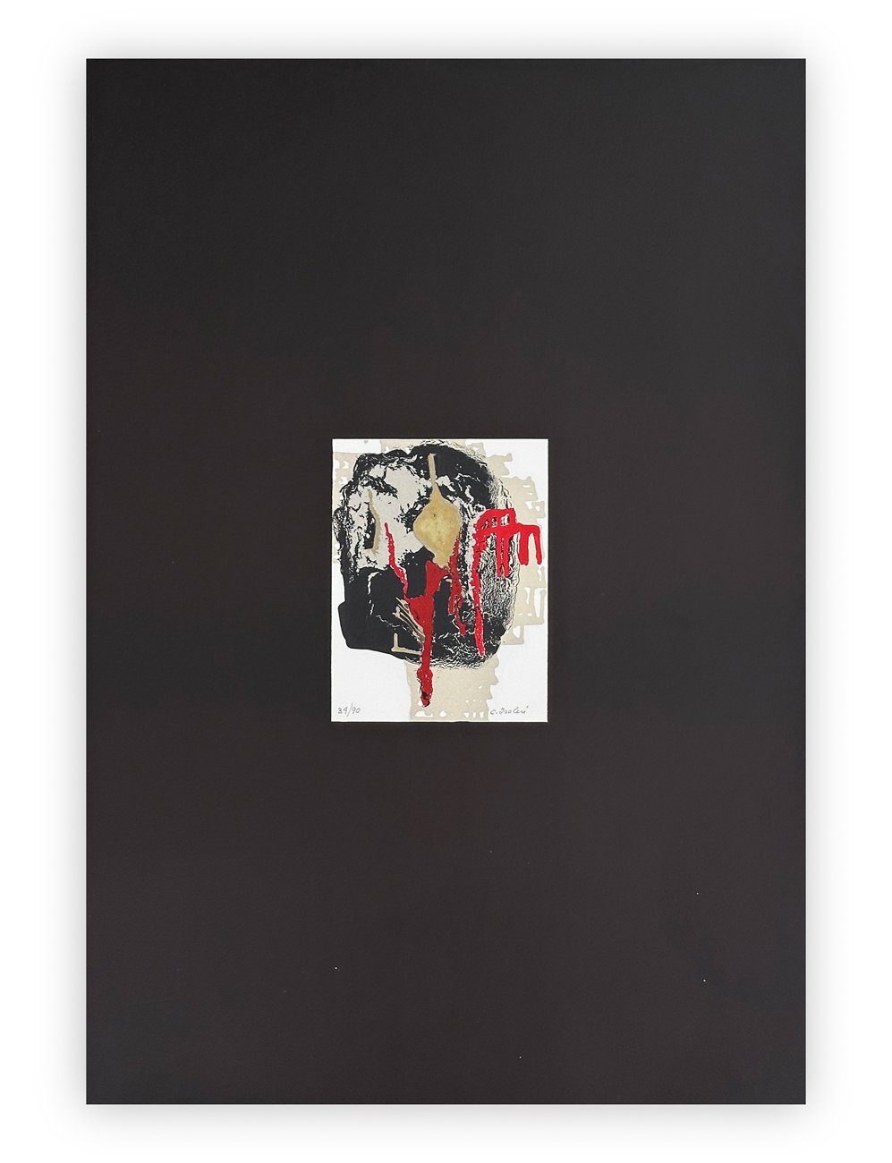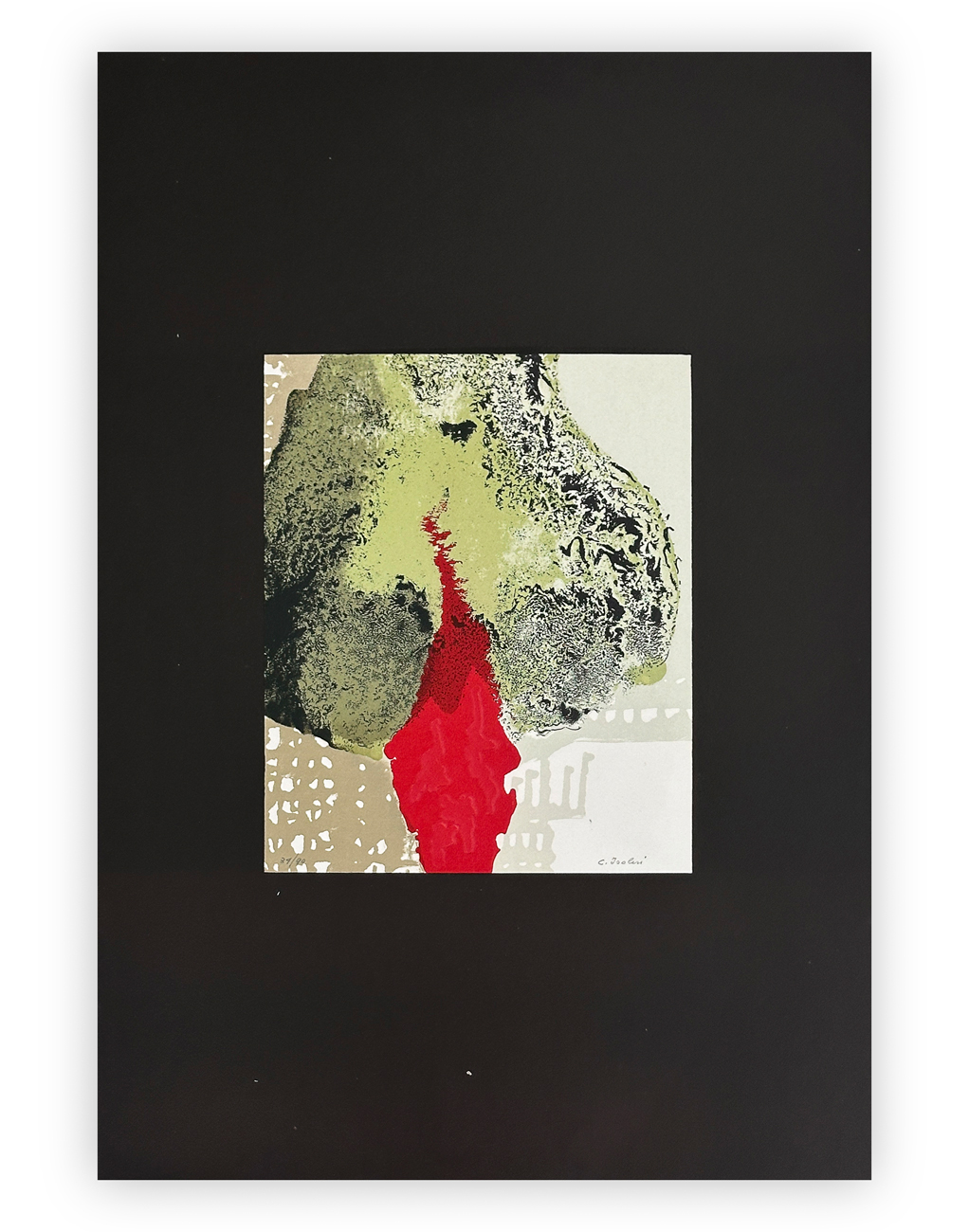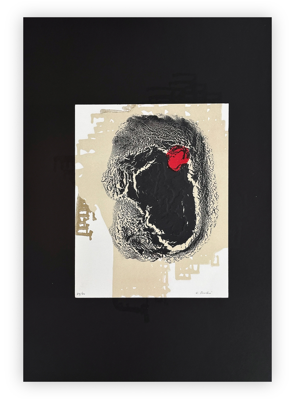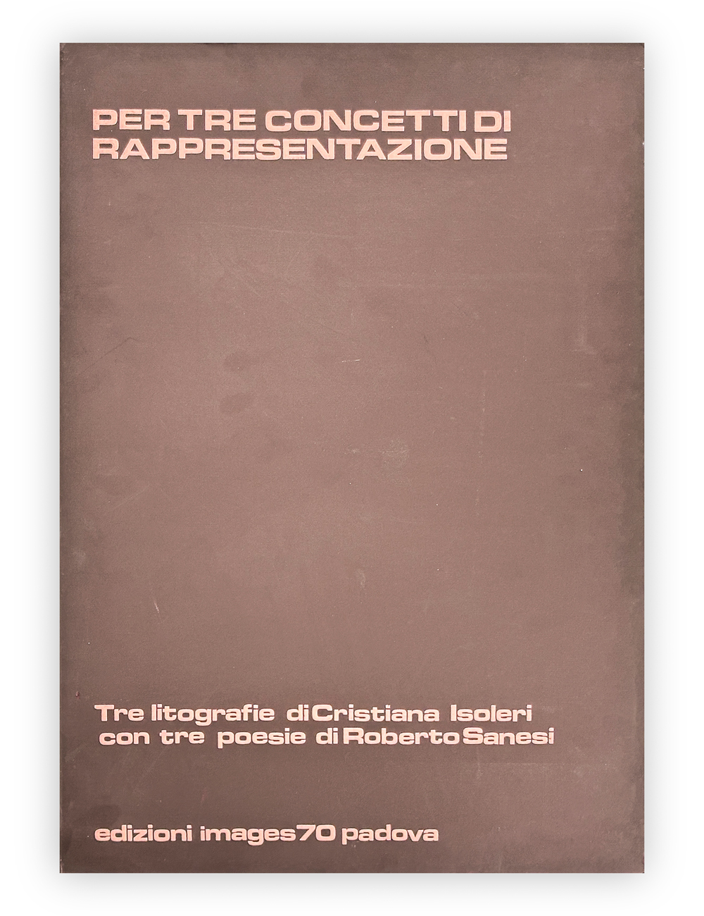 Cartella contenente 3 poesie di Roberto Sanesi illustrate da 3 litografie di Cristiana Isoleri, ciascuna recante firma e numerazione (Esemplare 34/90) a matita al fronte