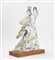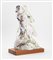 Scultura in ceramica policroma smaltata poggiante su base in legno