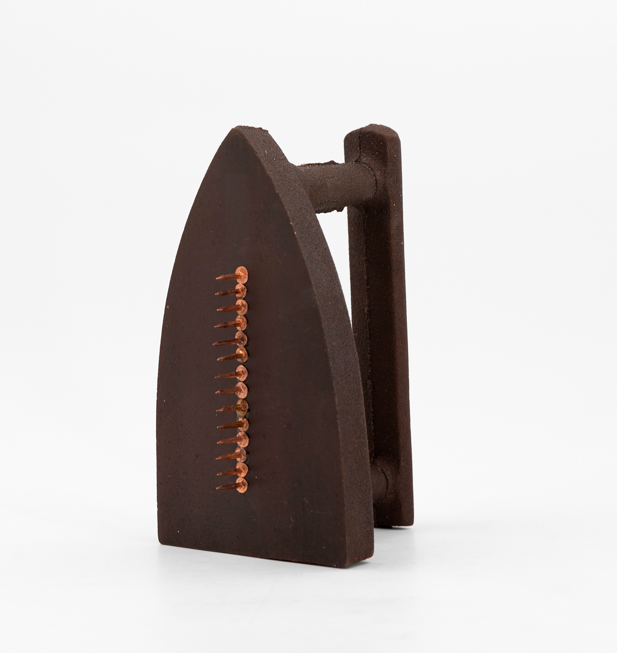 Opera multipla realizzata con ferro da stiro in ghisa e chiodi