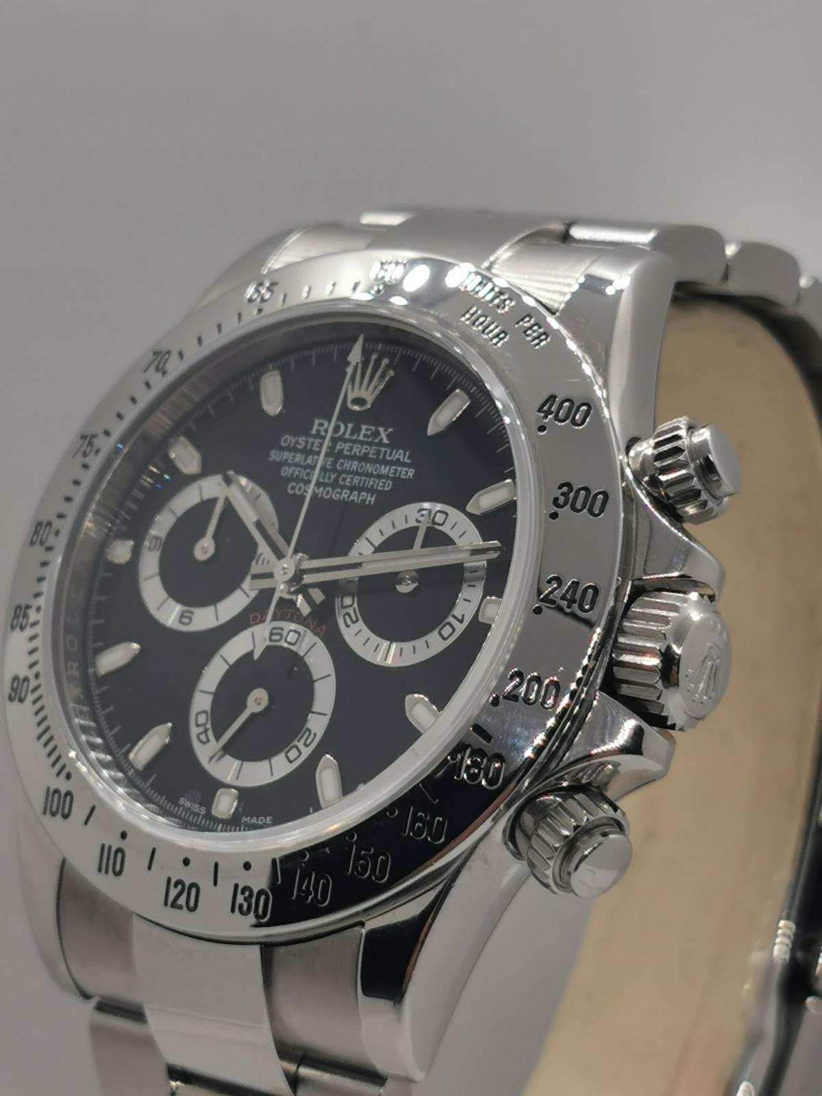 Marca Rolex Modello (Orologio) Daytona Numero di referenza 116520 chromalight Carica Automatico Materiale della cassa Acciaio Materiale cinturino Acciaio documenti originali Rolex, no box Carica Automatico Cassa Materiale della cassa Acciaio Diametro 40 mm Impermeabile 10 ATM Materiale lunetta Acciaio Vetro Vetro zaffiro Quadrante Nero Materiale cinturino Acciaio Colore cinturino Acciaio Chiusura Déployante Materiale chiusura Acciaio - COMMISSIONE D’ASTA 25%