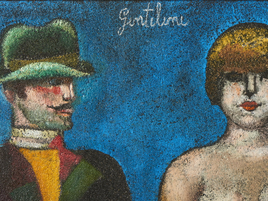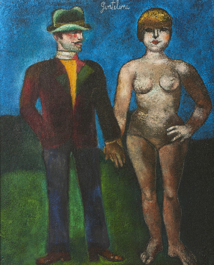 GENTILINI FRANCO (1909 - 1981) ADAMO ED EVA. 1979. Olio e sabbia su tela. Cm 50,00 x 61,00. firma