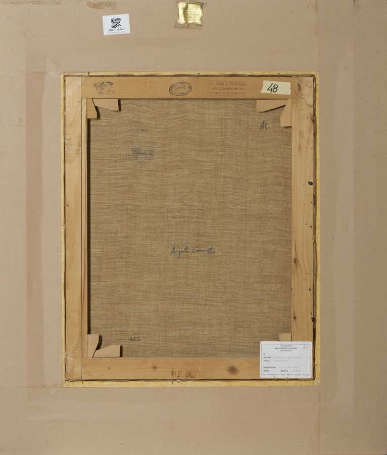 L'opera è accompagnata da autentica su fotografia a cura di Luciana Gentilini con timbro Galleria Marescalchi, Bologna