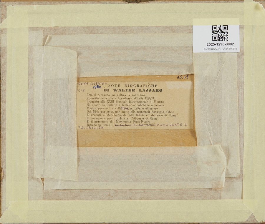 L'opera è accompagnata da certificato di archiviazione a cura di Sandra Lazzaro