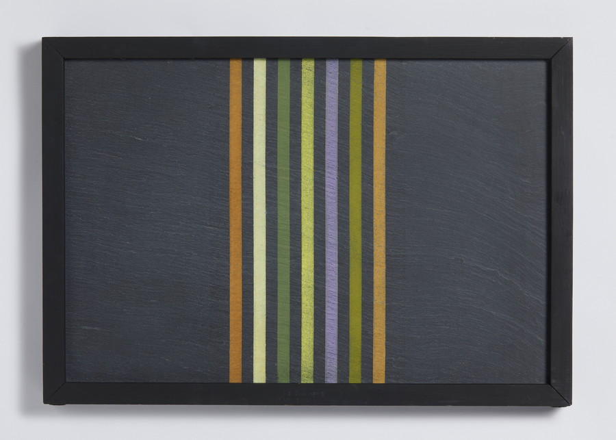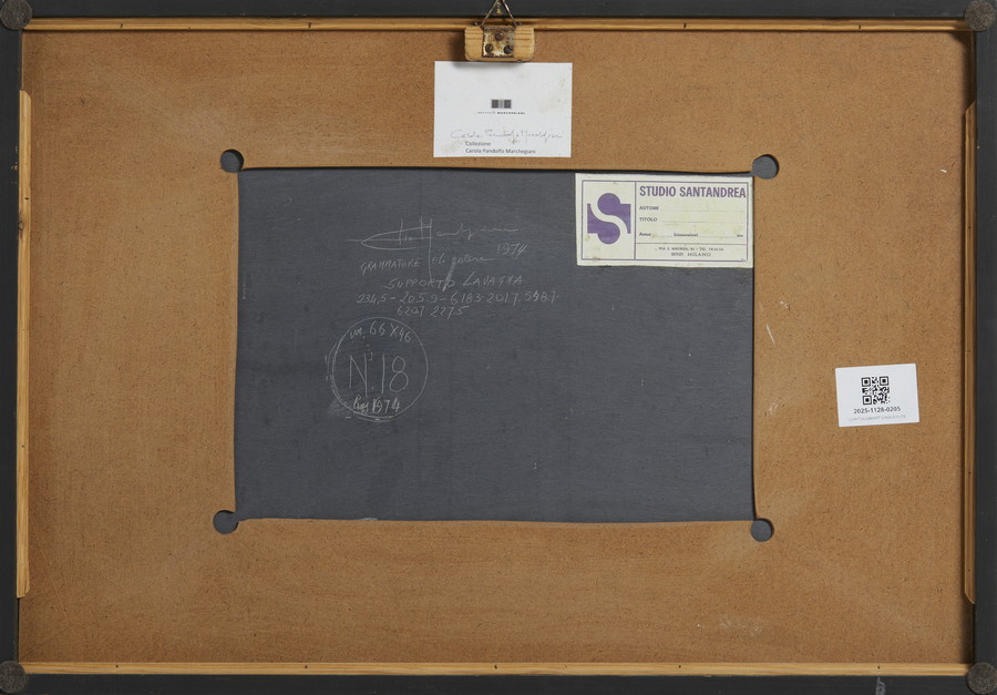 MARCHEGIANI ELIO (n. 1929) GRAMMATURE DI COLORE 2. 1974. pigmento su lavagna. Cm 66,00 x 46,00. sul retro: firma, titolo, data ed etichetta Archivio Marchegiani, etichetta studio Sant'Andrea Milano.