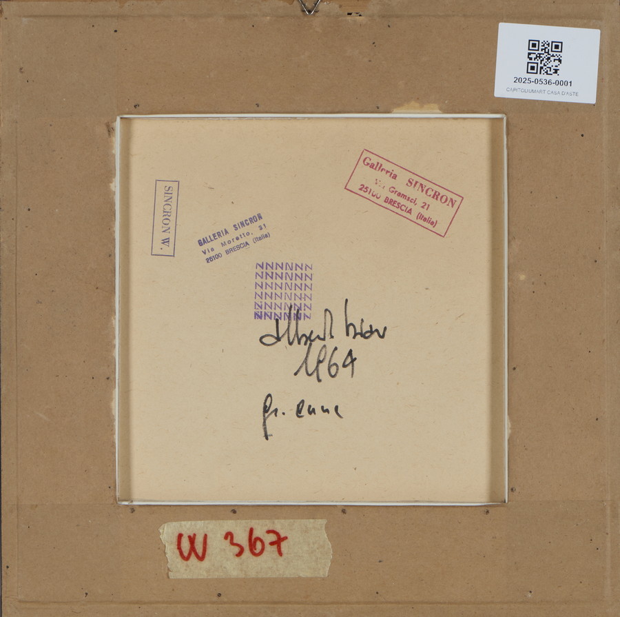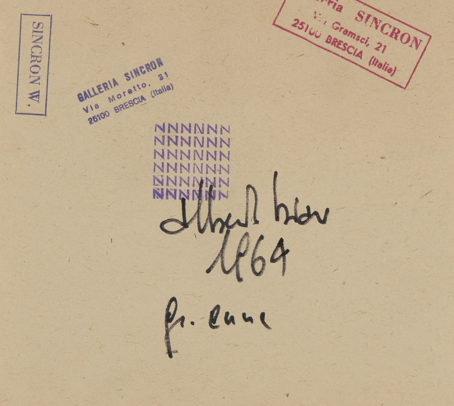 Si ringrazia Alberto Biasi per aver confermato verbalmente l'autenticità dell'opera. Cornice presente