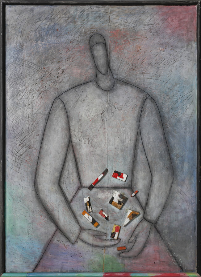BARNI ROBERTO (n. 1939) FANETE. Acrilico su tavola. Cm 189,00 x 257,00. sul retro: titolo, firma e data