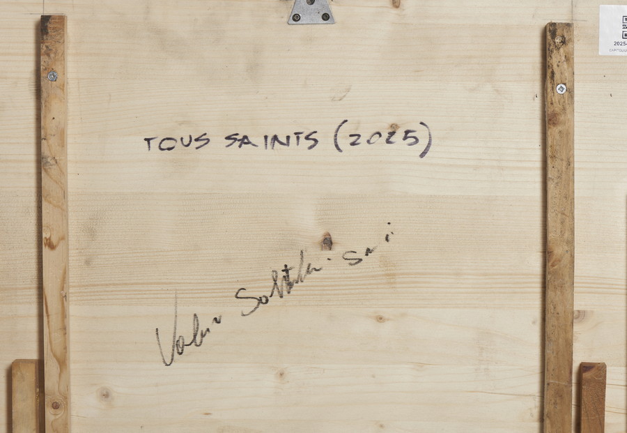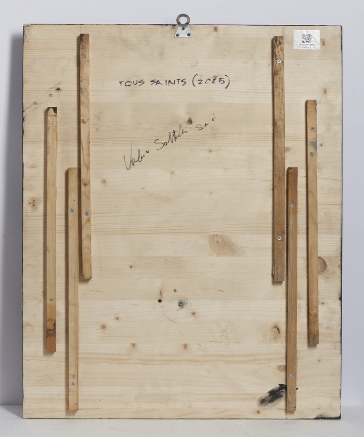 Opera da parete facente parte della serie sulle iconografie dei santi, tema che periodicamente si riaffaccia nel percorso artistico di Saltarelli Savi. Si passa con “Tous Saints” dalla trattazione dei santi storici a un approccio al tempo stesso più privato e