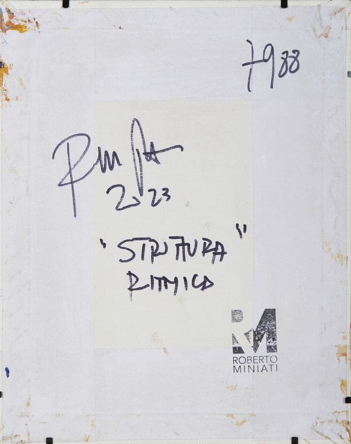 MINIATI ROBERTO (n. 1952) STRUTTURA RITMICA. 2023. Acrilico su tela applicata su tavola. Cm 23,50 x 29,50. sul retro: firma, data, titolo e timbro dell'artista