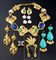 In oro giallo, a forma di maschera di indiano del Centro America; volto in onice