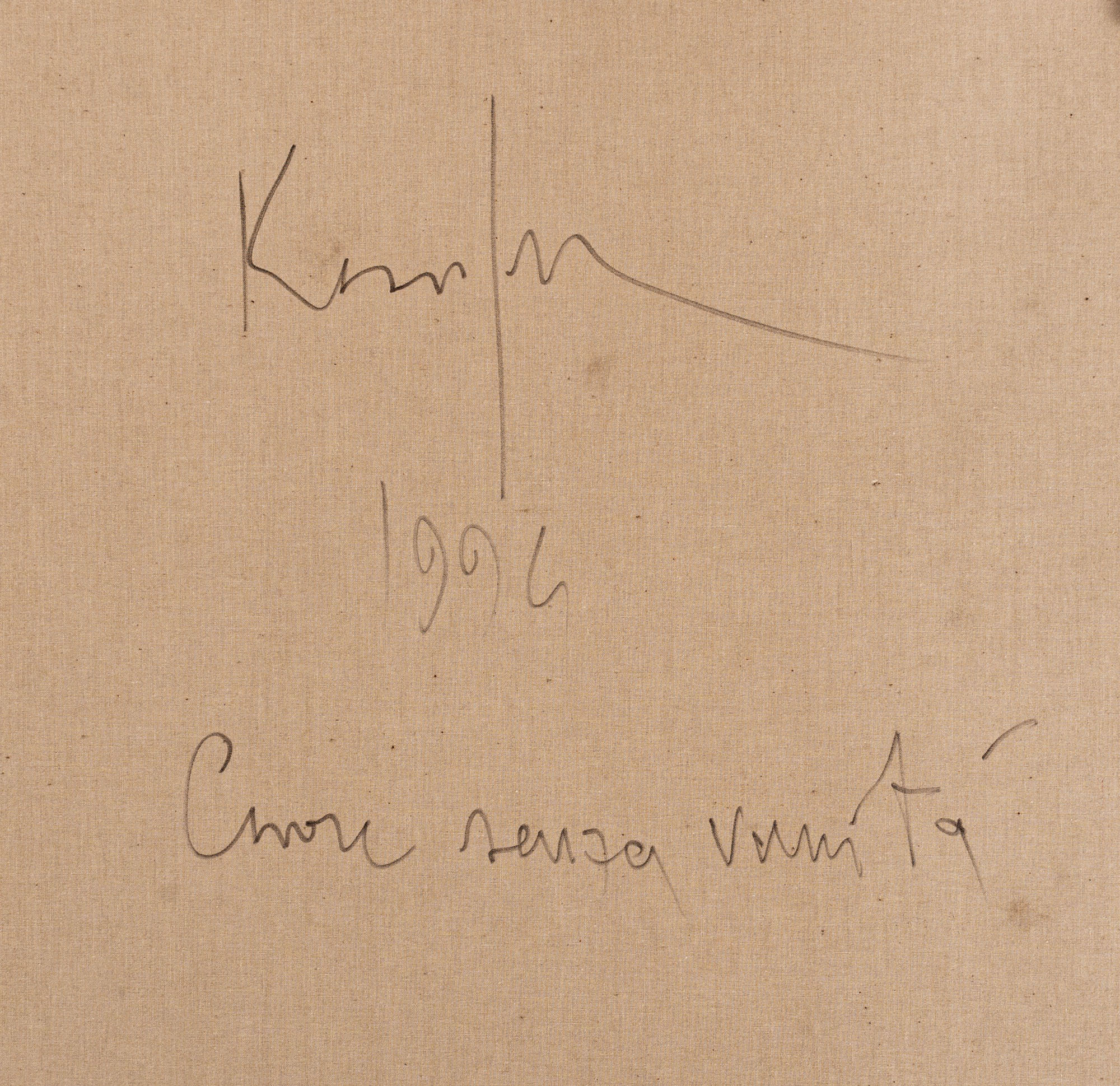MASSIMO KAUFMANN(1963)Cuore senza vanità1994Acrilico e silicone su tela130 x 130 cmFirma, data e titolo al retroPROVENIENZA:Collezione privata, TorinoESPOSIZIONI:21 aprile - 28 maggio 1994, Sempre più difficile, Galleria In Arco, TorinoBIBLIOGRAFIA:AA.VV., Massimo Kaufmann. Sempre più difficile, Galleria In Arco, Torino, 1994, pag. 19 (ill.)