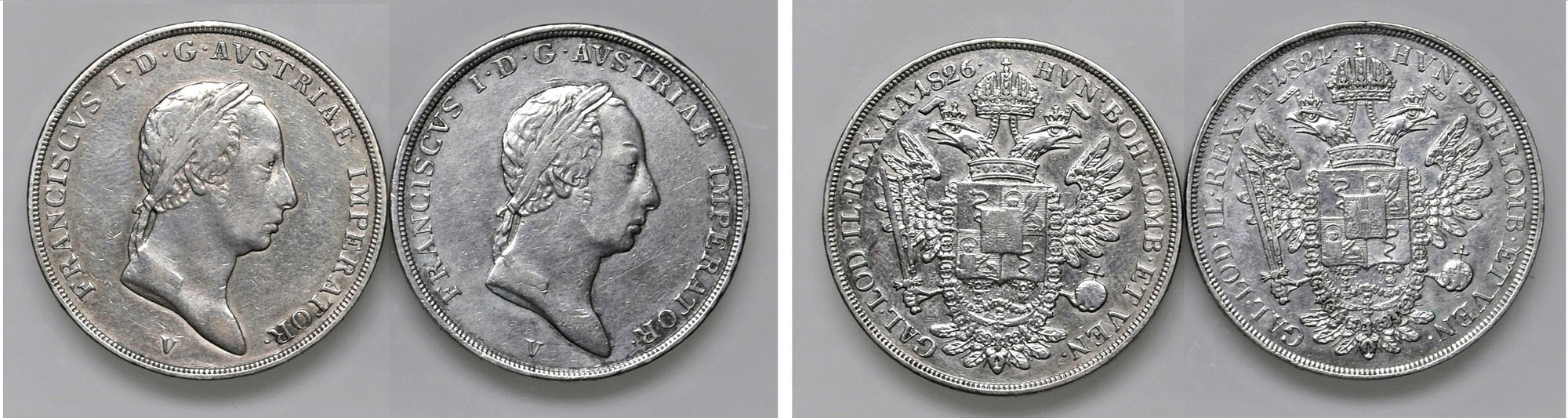 FRANCESCO I D'ASBURGO-LORENA (1815-1835) - Lotto di 2 esemplari di mezzo scudo nuovo.Argento, 25,83 gr.Dritto: Testa a destra laureata; - Rovescio: Aquila bicipite coronata e caricata dello stemma inquartato del Regno Lombardo-Veneto. Lo stemma è sormontato dalla Corona ferrea e circondato dal Collare del Toson d'oro.Gigante 59 (Non comune), 63 (Raro).Varie conservazioni da MB-BB a q.BB