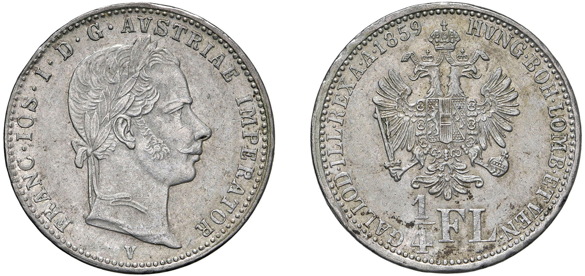 FRANCESCO GIUSEPPE I D'ASBURGO-LORENA, monetazione per l'Impero (1848-1866) - ¼ di Fiorino 1859, II tipo, Venezia.