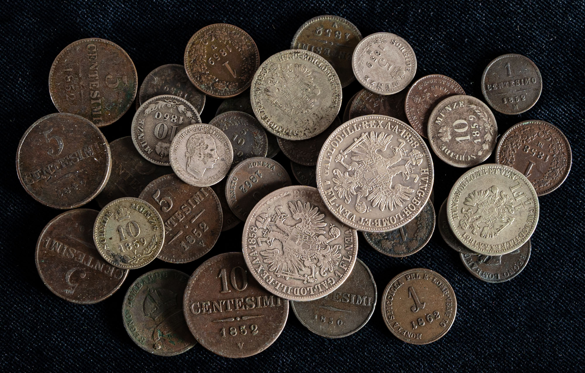 FRANCESCO GIUSEPPE I D'ASBURGO - LORENA, monetazione per l'Impero (1848-1866) - Lotto di 39 monete, senza ripetizioni.Vari metalli, di cui argento 42,74 gr. Gigante 27 (Non comune), 28, 29, 30, 31 (Non comune), 32, 33 (Raro), 34 (Raro), 35 (Raro), 36 (Raro), 37, 38, 40, 41, 42, 43, 44, 45, 46, 47, 81 (Non comune), 82 (Non comune), 97 (Raro), 100 (Non comune), 106 (Non comune), 107 (Raro), 108 (Raro), 114 (Raro), 115 (Molto raro), 117 (Non comune), 118 (Raro), 119 (Non comune), 120 (Non comune), 121 (Non comune), 122, 123 (Raro), 124, 125, 126.Varie conservazioni, da q.MB a m.BB