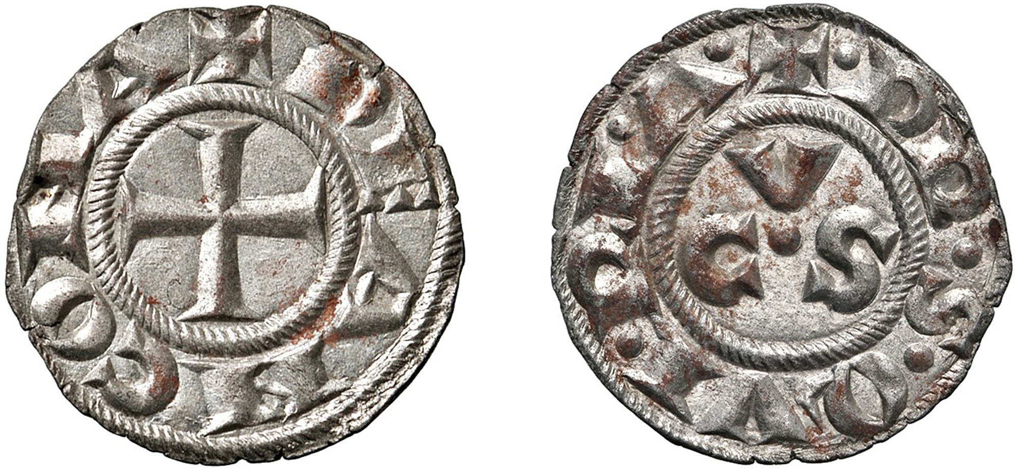 ANCONA - REPUBBLICA (XIII-XIV sec.) - Denaro, s.d.Mistura, 0,86 gr. - Diam. 16,00 mm.Dritto: Croce patente; - Rovescio: Lettere C V S attorno a globetto.CNI 15, Biaggi 42.SPL