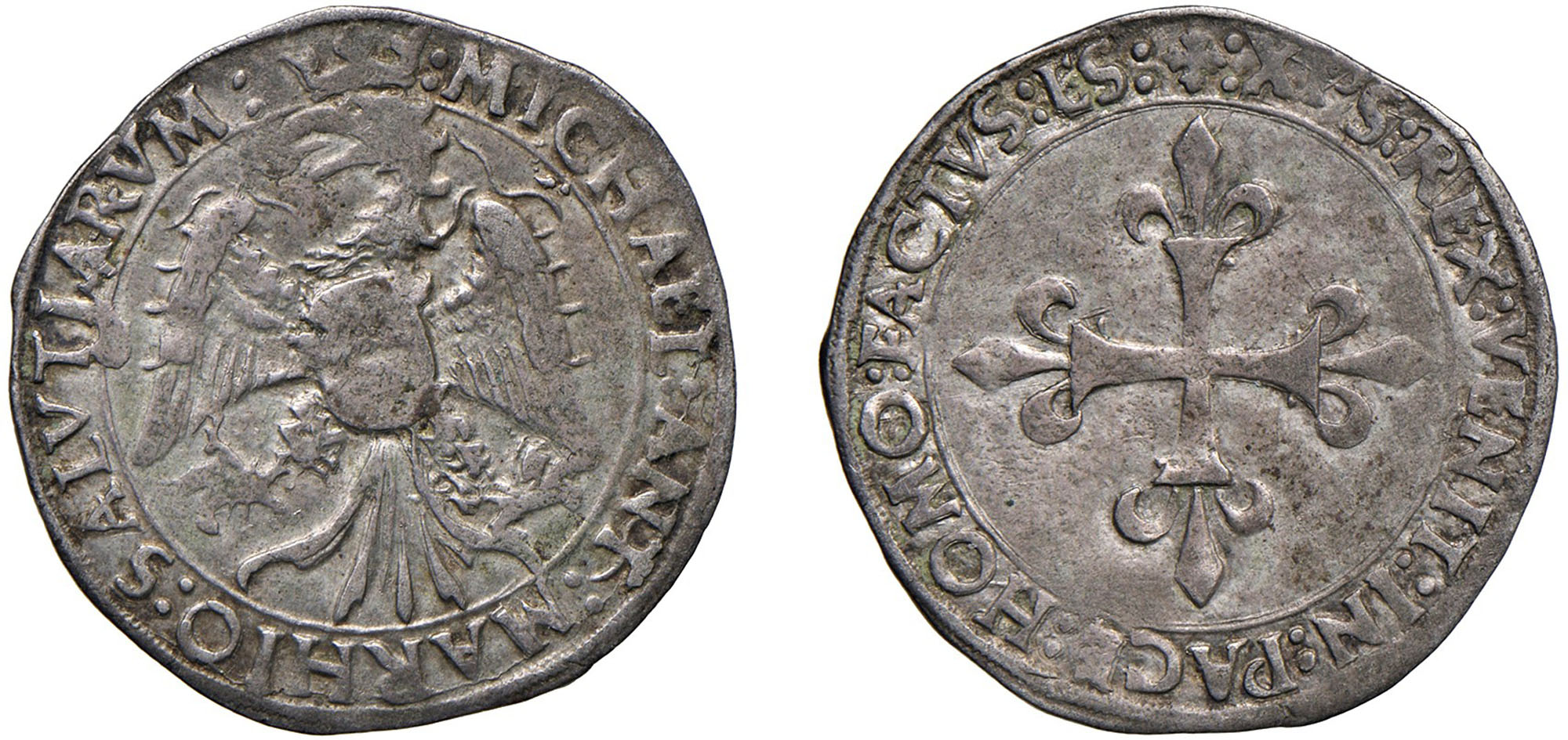 CARMAGNOLA - MICHELE ANTONIO DI SALUZZO (1504-1528) - Rolabasso, s.d..Argento, 2,99 gr. - Diam. 26 mm. Dritto: Aquila coronata ad ali spiegate, volta a sinistra, con armetta Saluzzo caricata in petto. - Rovescio: Grande croce gigliata.MIR 147/1, CNI 107 RaroGradevole esemplare per il tipo di moneta.m.BB