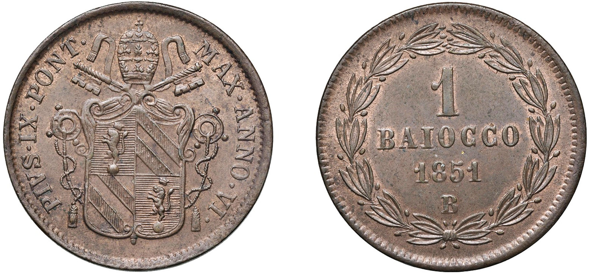 PIO IX, Giovanni Maria Mastai-Ferretti (1846-1870) - 1 baiocco 1851, an. VI, Bologna, I tipo.