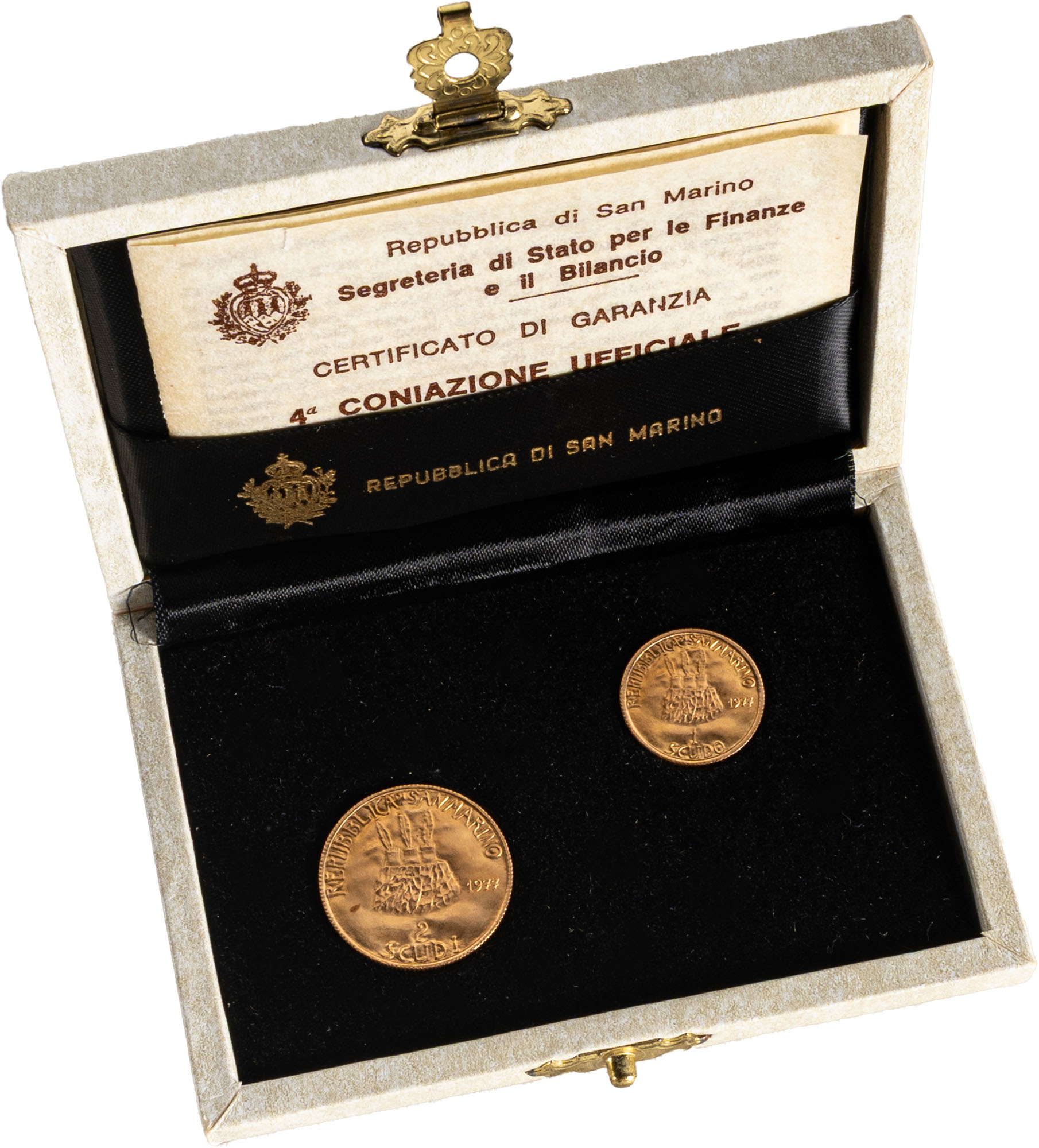 Lot 250 | SAN MARINO - Nuova monetazione (1972-) - Dittico da 1 e 2 scudi 1977, 'Democrazia'.