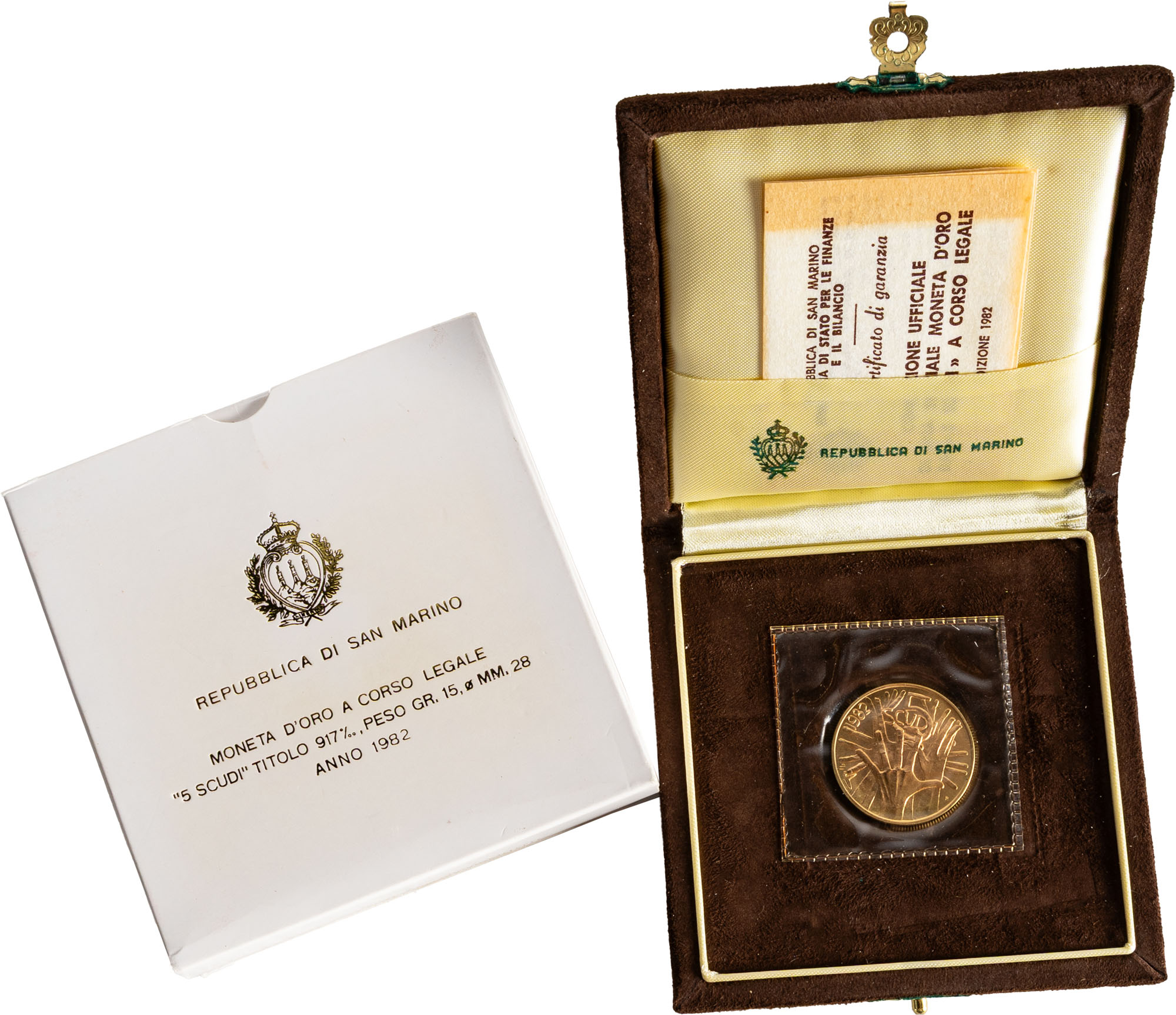 Lot 259 | SAN MARINO - Nuova monetazione (1972-) - 5 scudi 1982, 'La Libertà'.