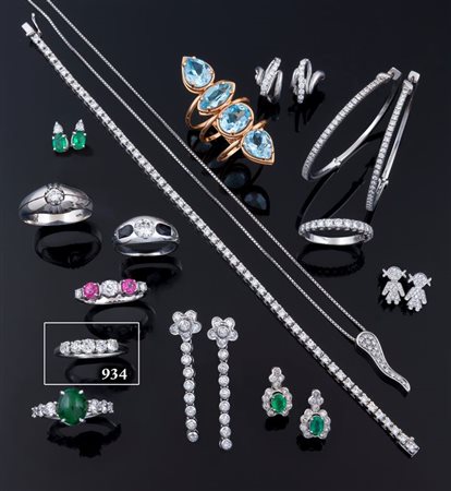 In oro bianco con cinque diamanti di mezzo taglio per complessivi ct 0,85 ca