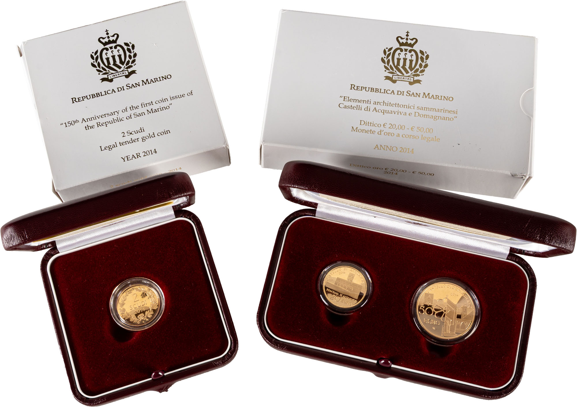 SAN MARINO - Nuova monetazione (1972-) - Lotto composto da 20, 50 euro e 2 scudi, 2014, in astucci originali.
