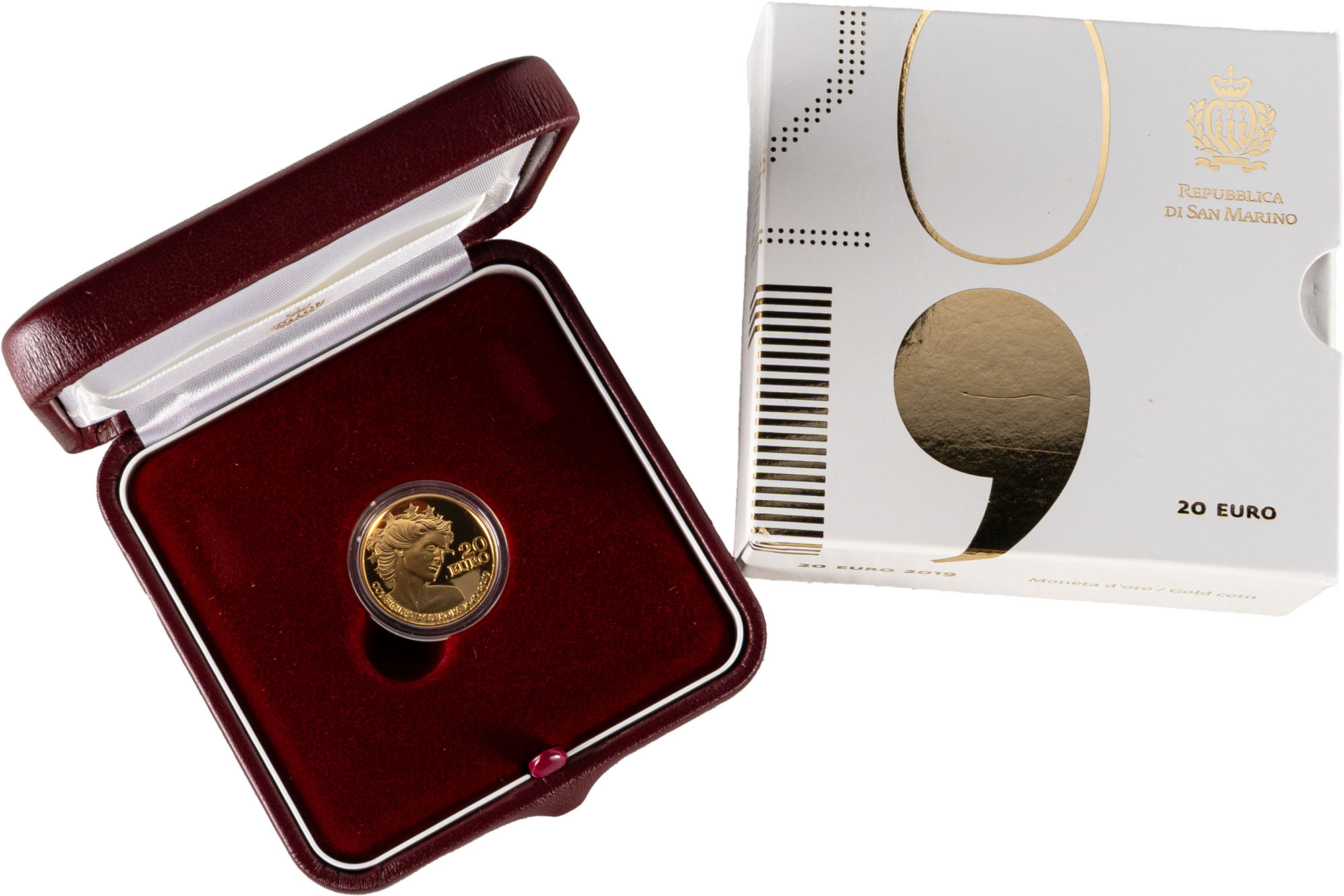 SAN MARINO - Nuova monetazione (1972-) - 20 euro, 2019, in astuccio originale.Oro, 6,45 gr.In astuccio e confezione originale della zecca.FDC/FS
