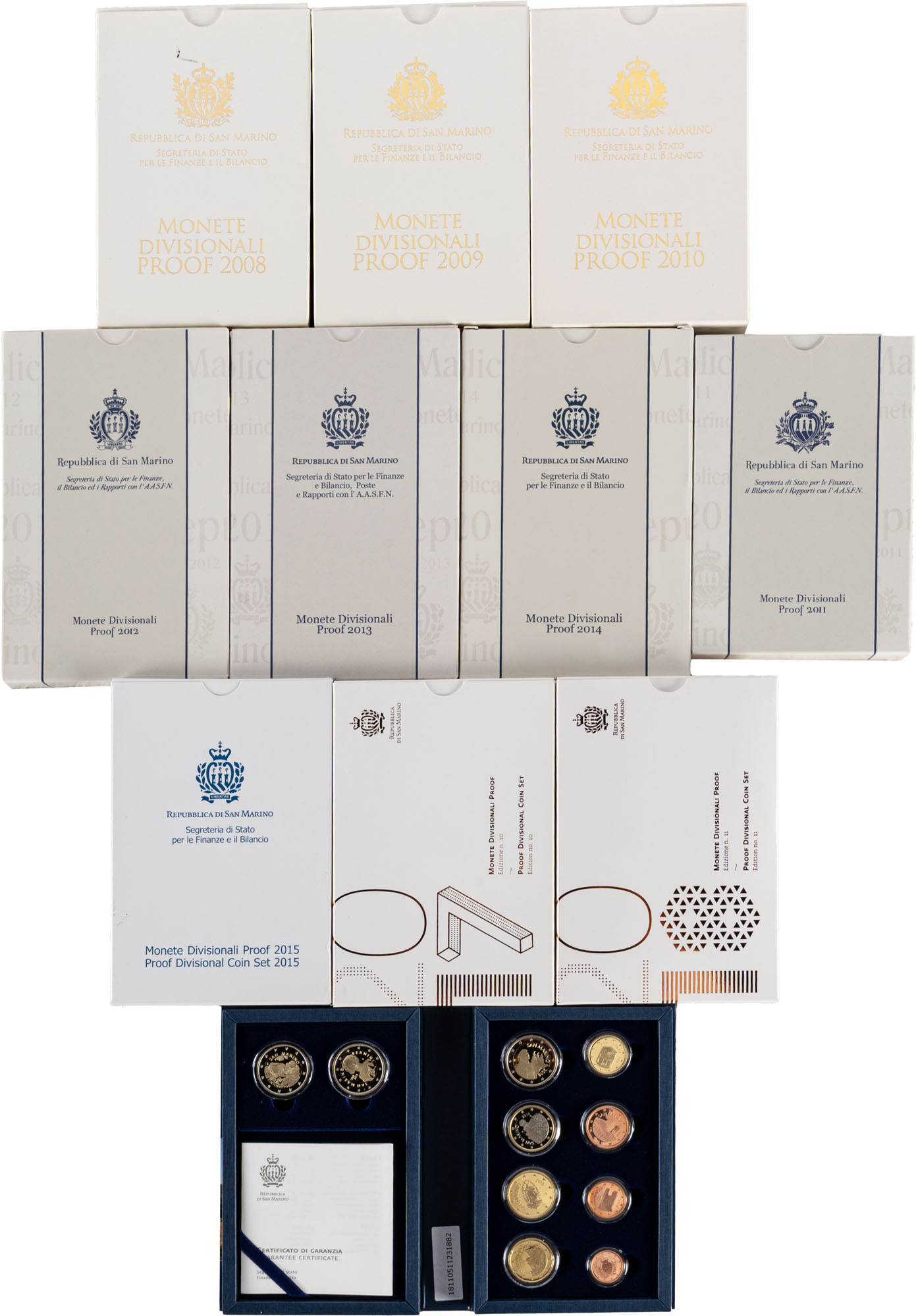 SAN MARINO - Nuova monetazione (1972-) - Lotto composto da 10 divisionali in euro PROOF (2008-2018).