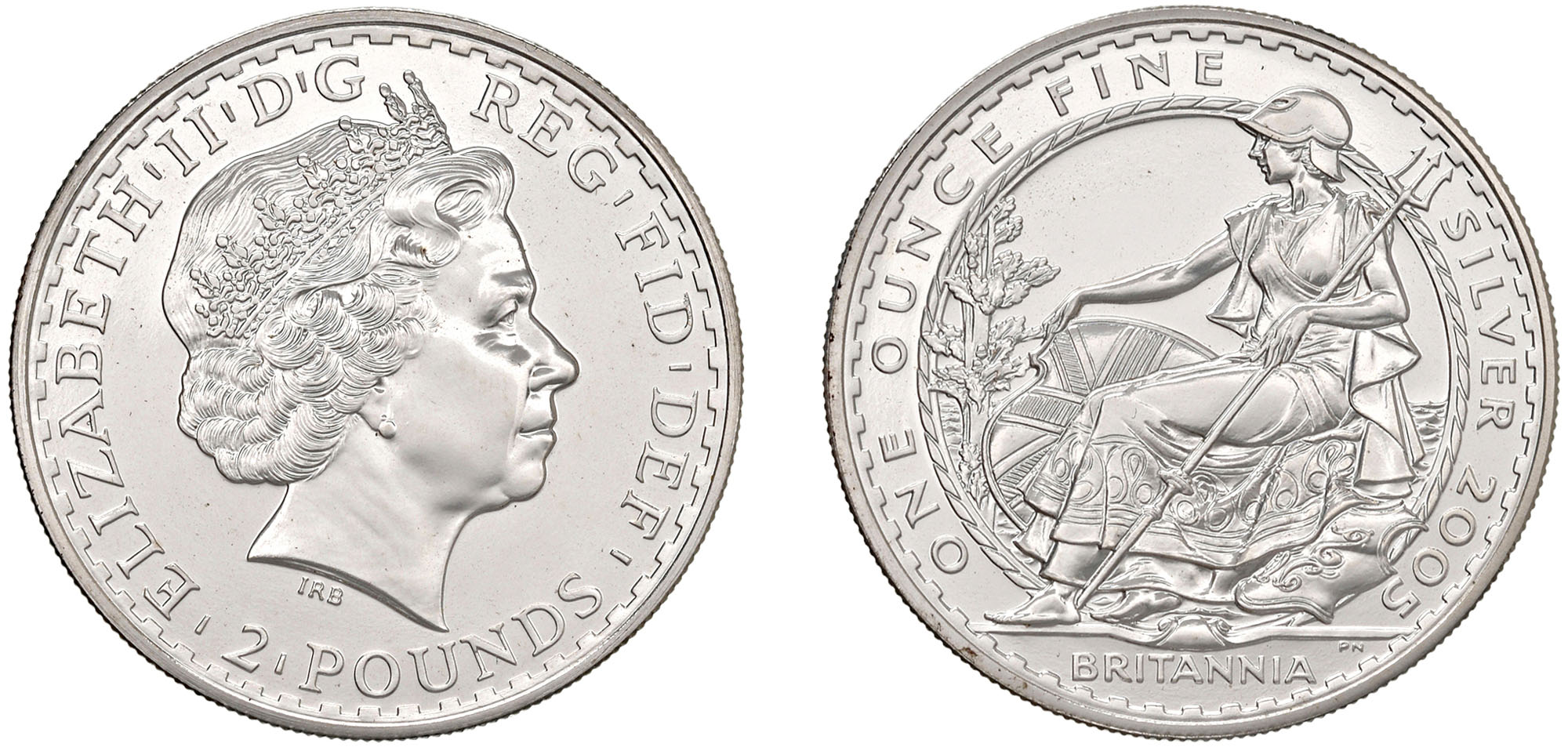 GRAN BRETAGNA - ELISABETTA II (1952-2022) - 2 Pounds 2005.Argento, 31,29 gr.Dritto: Testa coronata a destra; - Rovescio: Britannia seduta, volta a sinistra.FDC/FS
