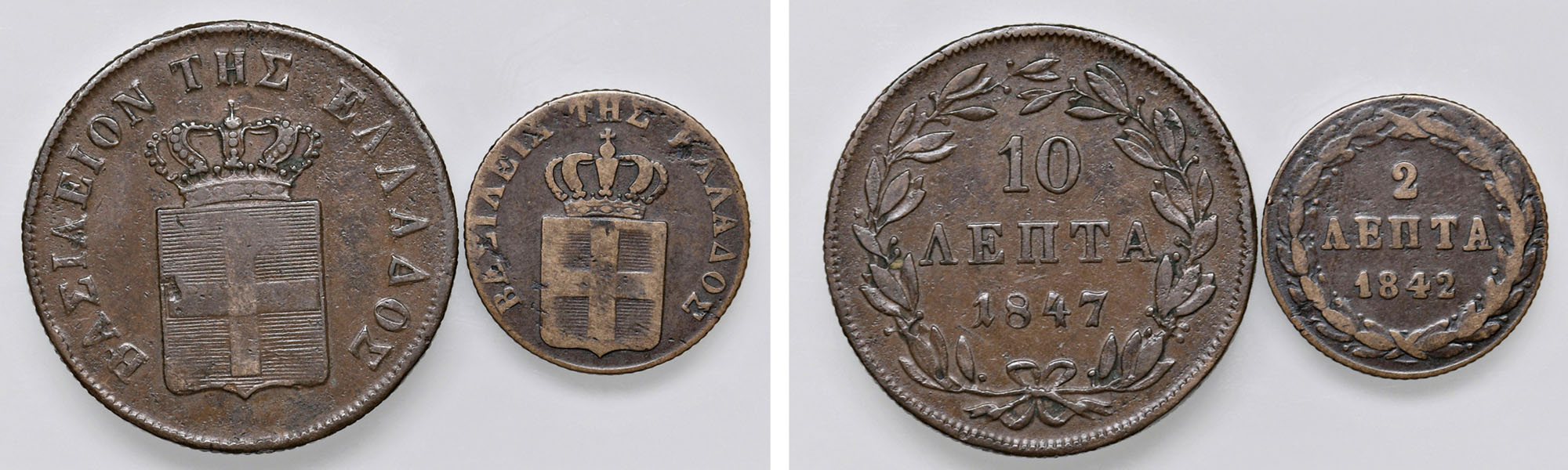 GRECIA - OTTO (1832-1862) - Lotto di 2 e 10 lepta 1842.