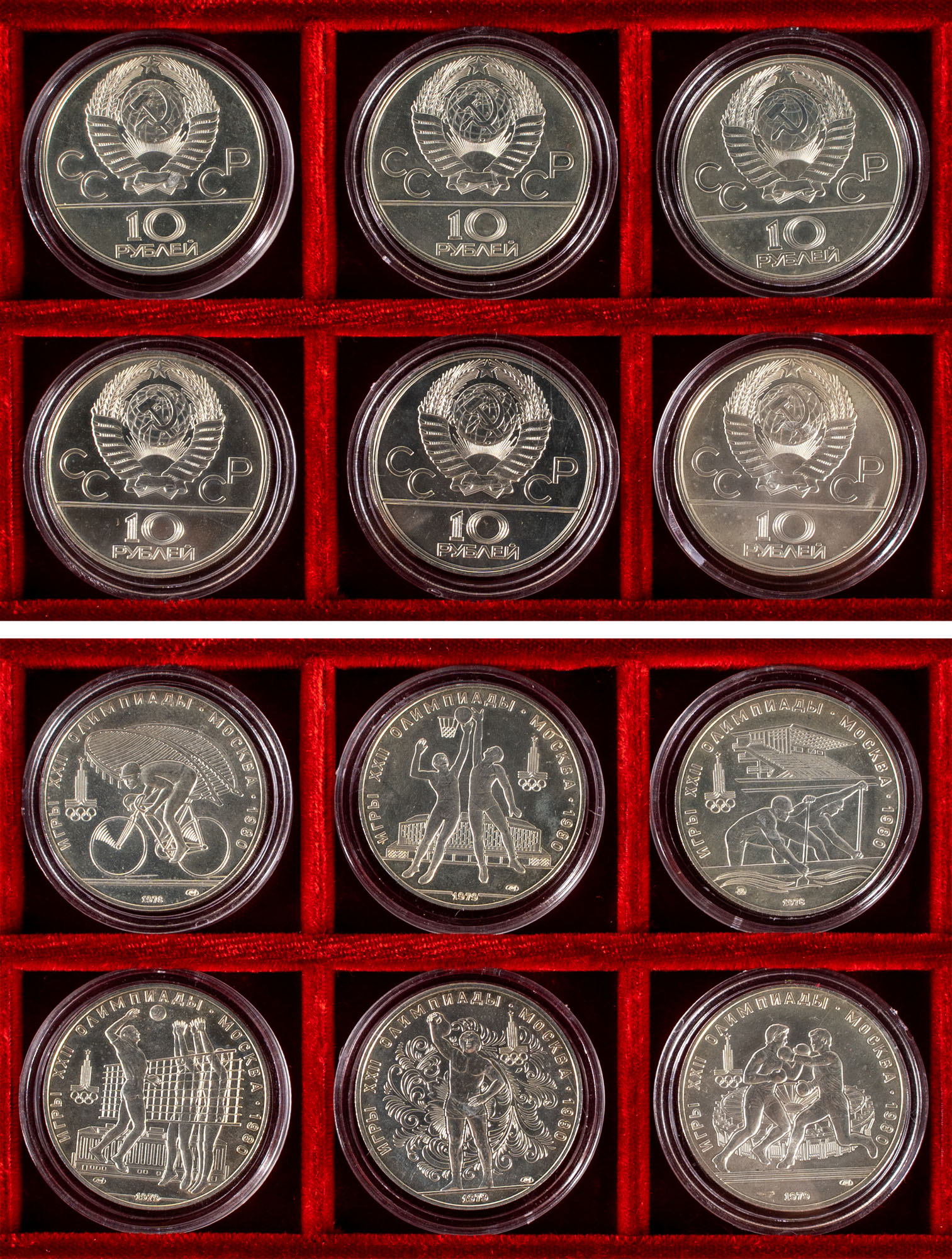 RUSSIA - UNIONE SOVIETICA (1922 - 1991) - Lotto di 6 monete da 10 rubli commemorative delle Olimpiadi di Mosca 1980.