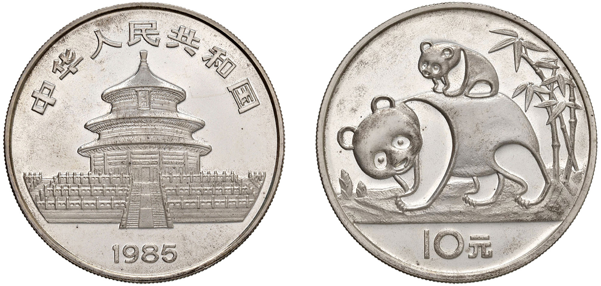 CINA - Repubblica Popolare (1949-) - 10 Yuan da 1 oncia, Serie Panda Proof, 1985.