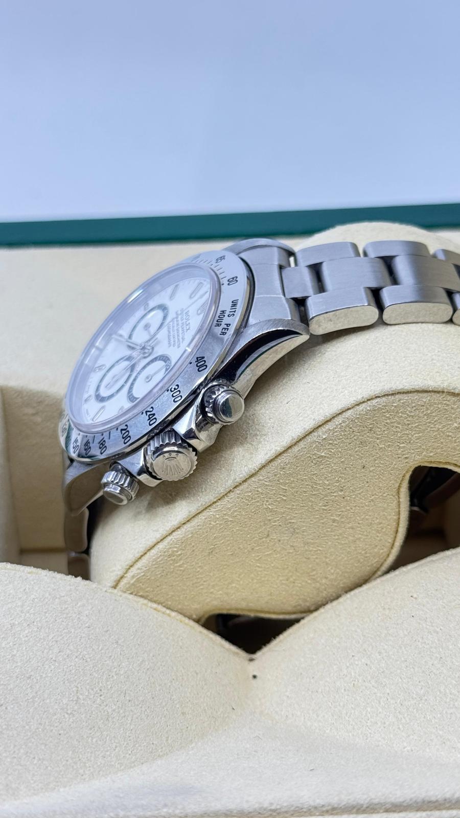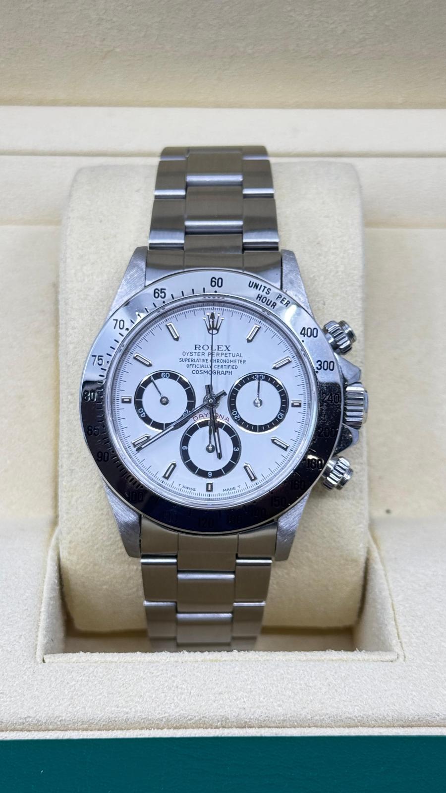 Rolex Modello (Orologio) Daytona 6 rovescio Numero di referenza 16520 Carica Automatico Materiale della cassa Acciaio Materiale cinturino Acciaio Anno di produzione 1992 Condizione ottimo Corredo documenti originali, no box Carica Automatico Movimento zenith el primero Materiale della cassa Acciaio Diametro 40 mm Impermeabile 10 ATM Materiale lunetta Acciaio Vetro Vetro zaffiro Quadrante bianco Numeri sul quadrante Senza numeri Cinturino Materiale cinturino Acciaio Colore cinturino Acciaio Chiusura Déployante Materiale chiusura Acciaio Un anno di garanzia del negozio - COMMISSIONE D’ASTA 25%