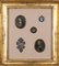 Cornice in legno intagliato e dorato contenente quattro miniature e una placchetta in argento, Italia meridionale secoli XVIII - XIX