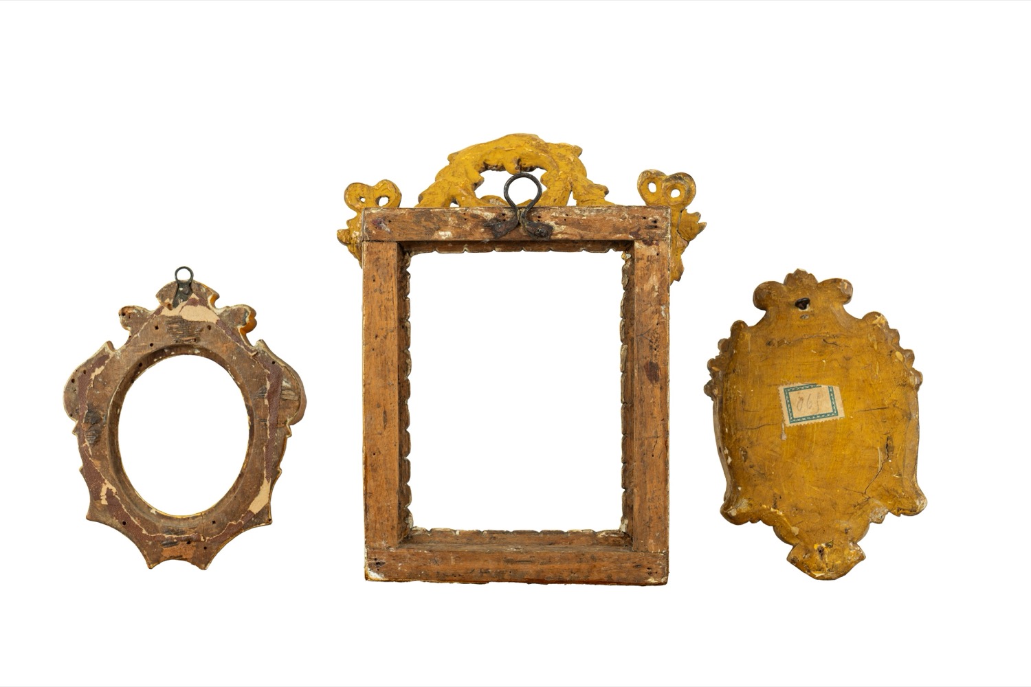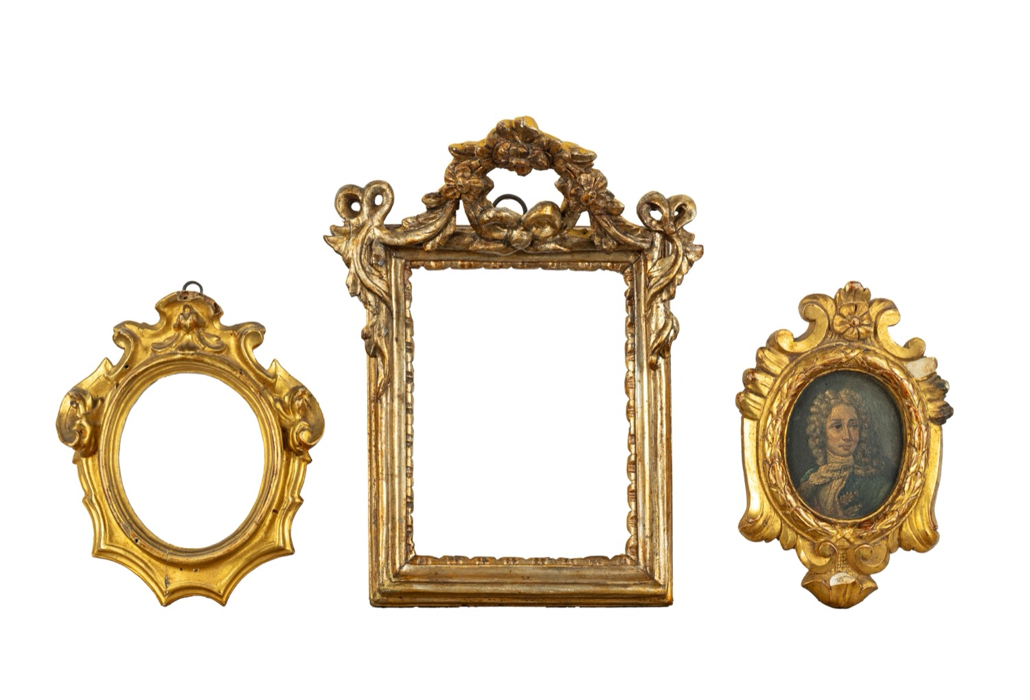 una rettangolare con fastigio a motivi floreali e fiocchi, e due ovali con motivi a rocailleuna rettangolare con fastigio a motivi floreali e fiocchi, e due ovali con motivi a rocaille
