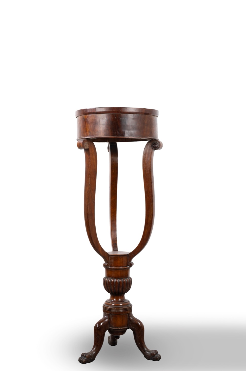sorretto da tripode a volute e zampe leoninesorretto da tripode a volute e zampe leonine