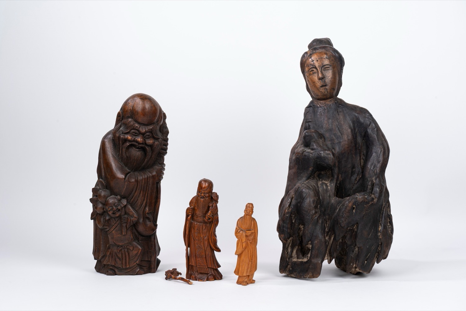 Lotto composto da quattro figure in legno scolpito. Cina, secolo XX