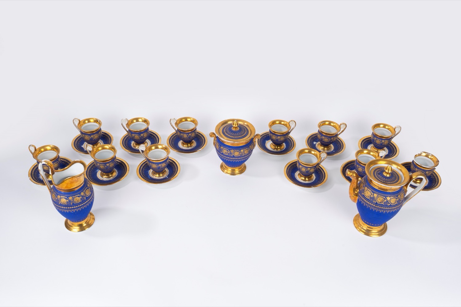Servizio in porcellana blu e oro, Francia secolo XIX