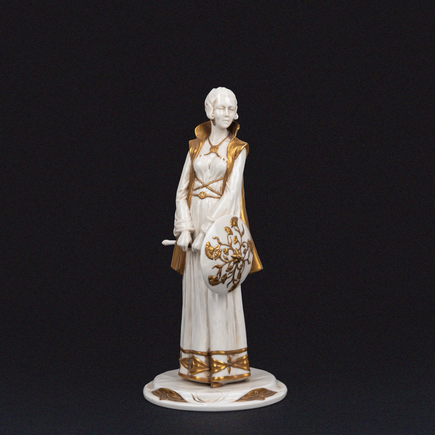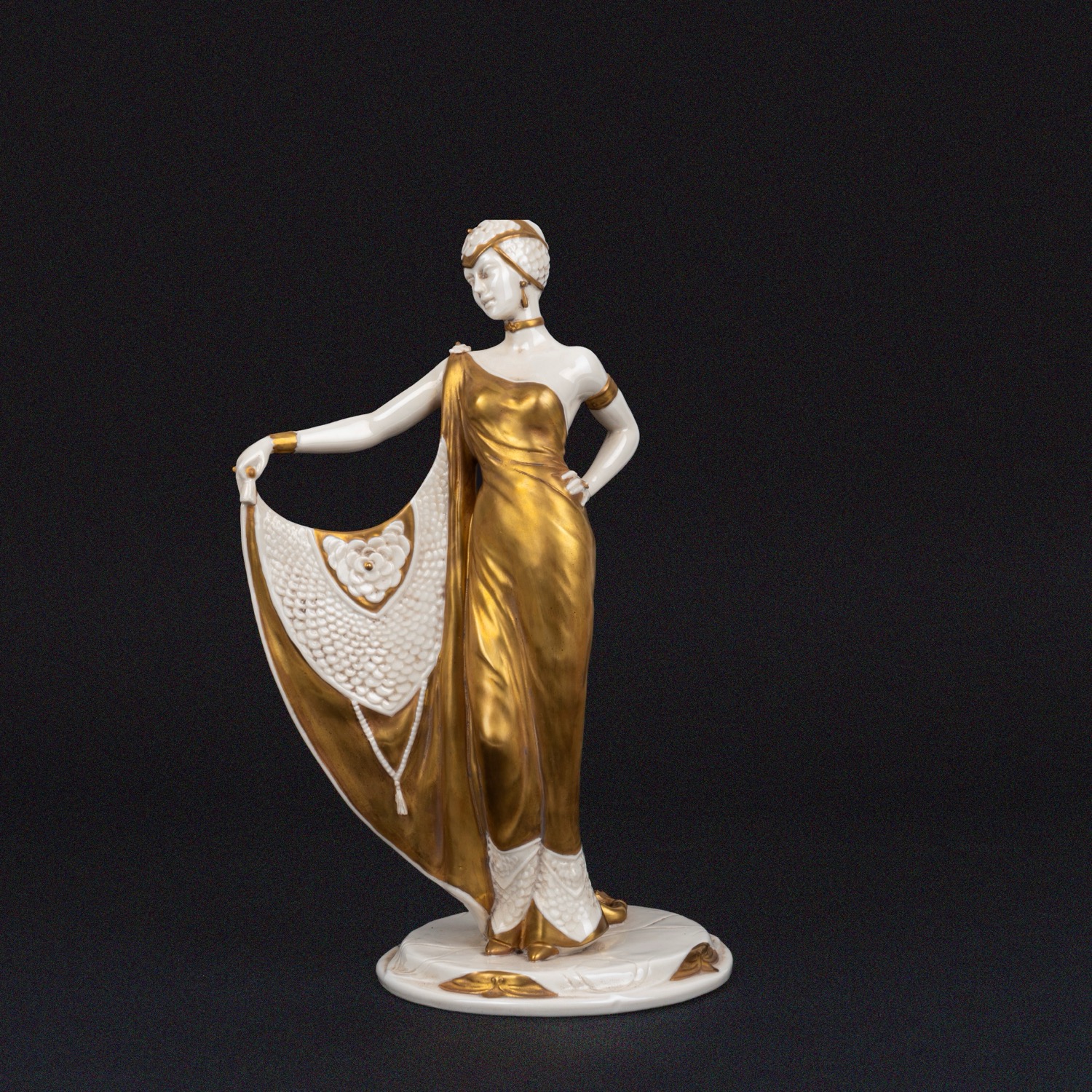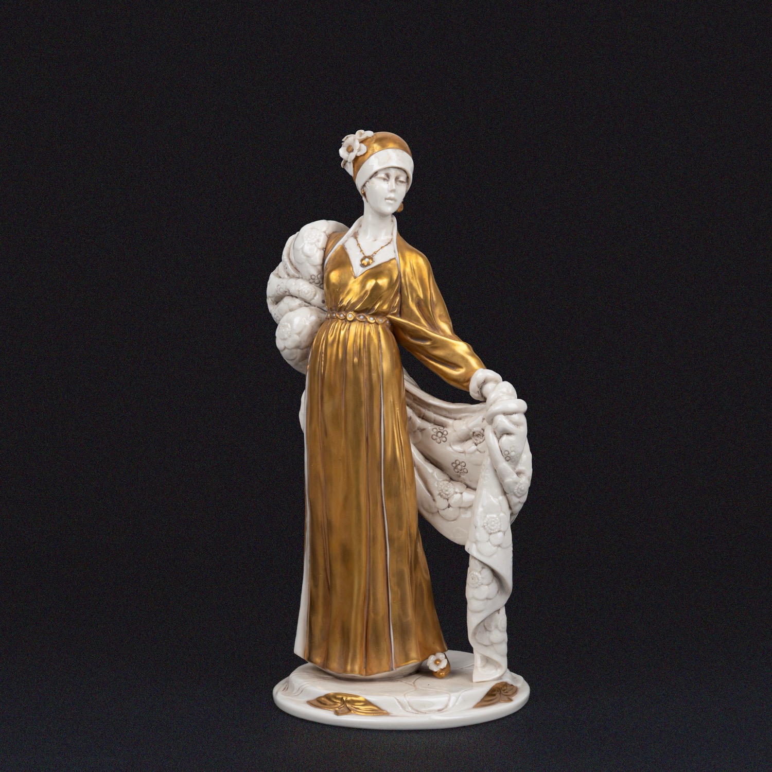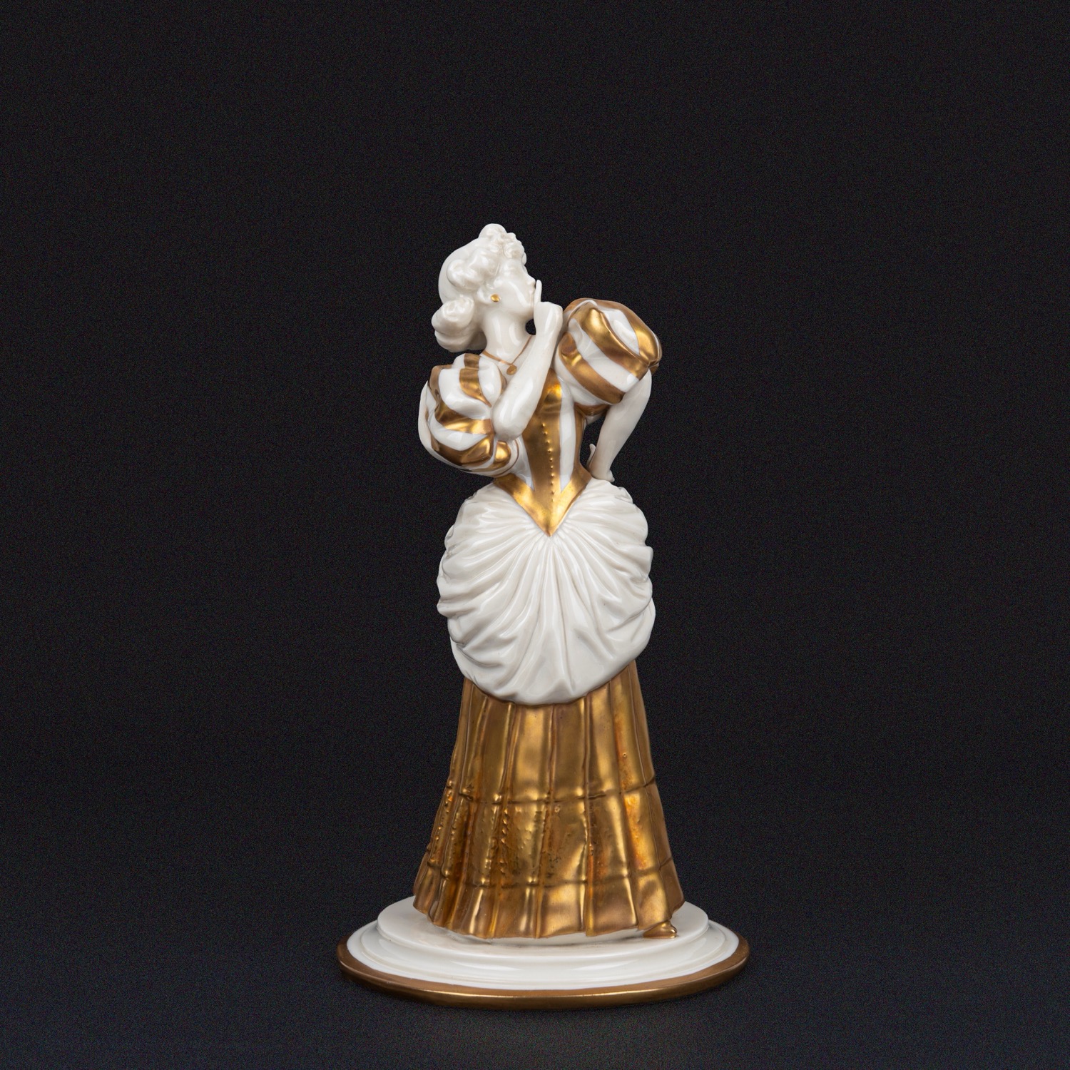 Lotto composto da sette sculture in porcellana di Capodimonte bianca e oro, raffiguranti damine