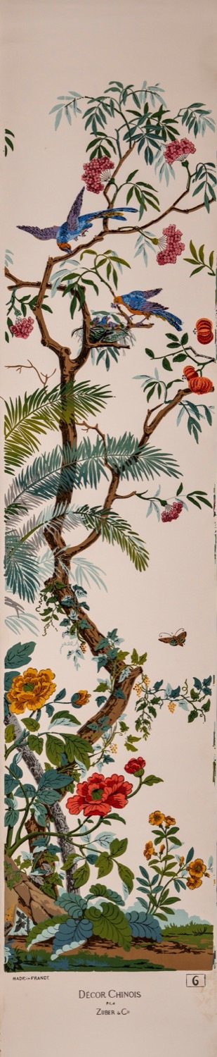 raffigurante una successione continua di paesaggi esotici, con flora e fauna, ispirati ai papiers peints cinesi ottocenteschi