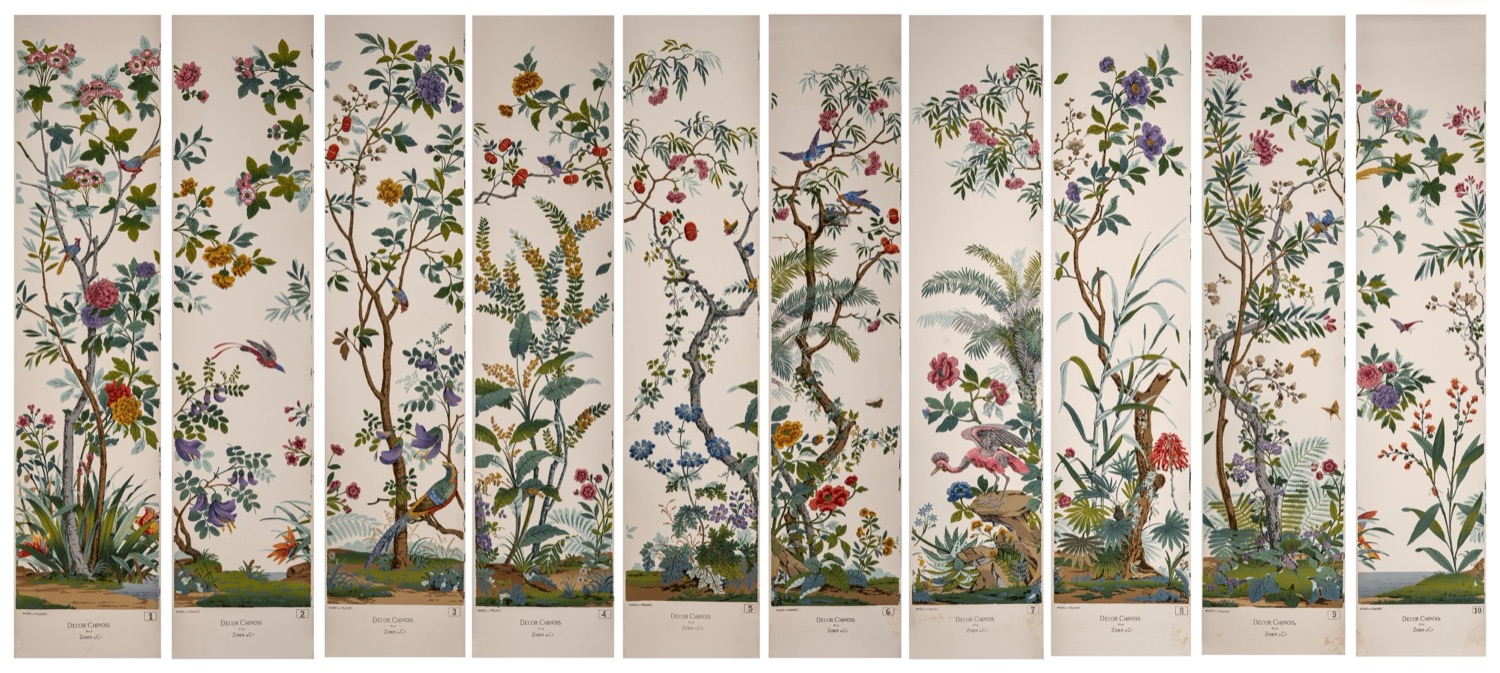 Zuber & Cie. 'Décor Chinois' wallpaper, serie completa di 10 pannelli, da un modello del 1832, France, second half of the 20th century
