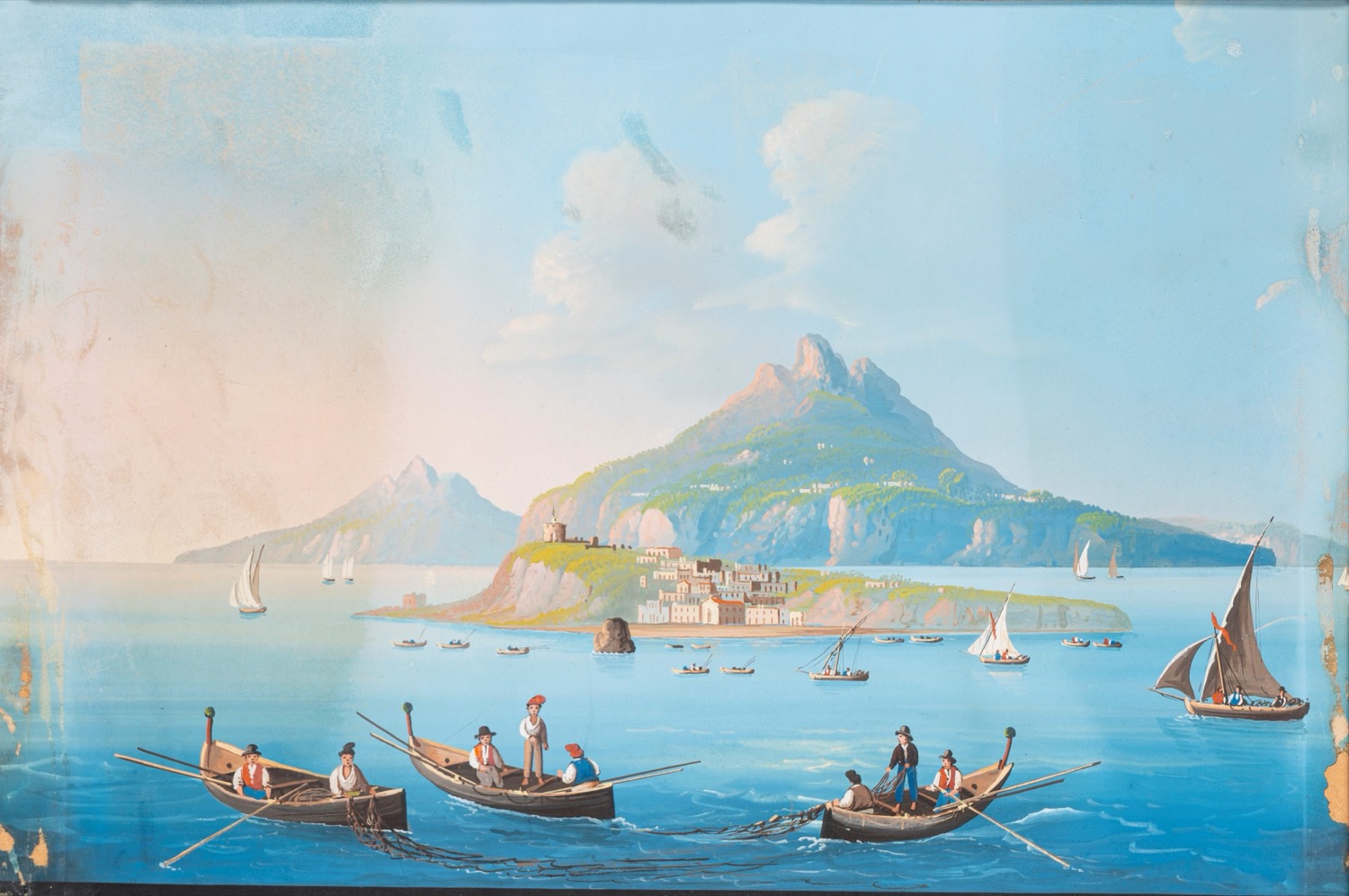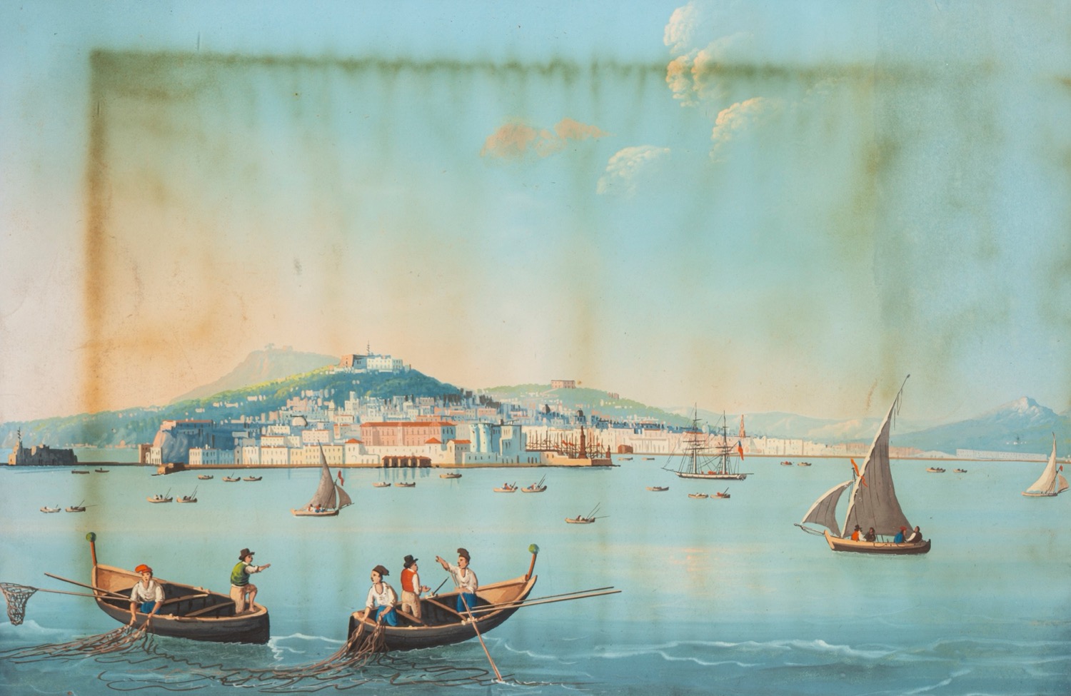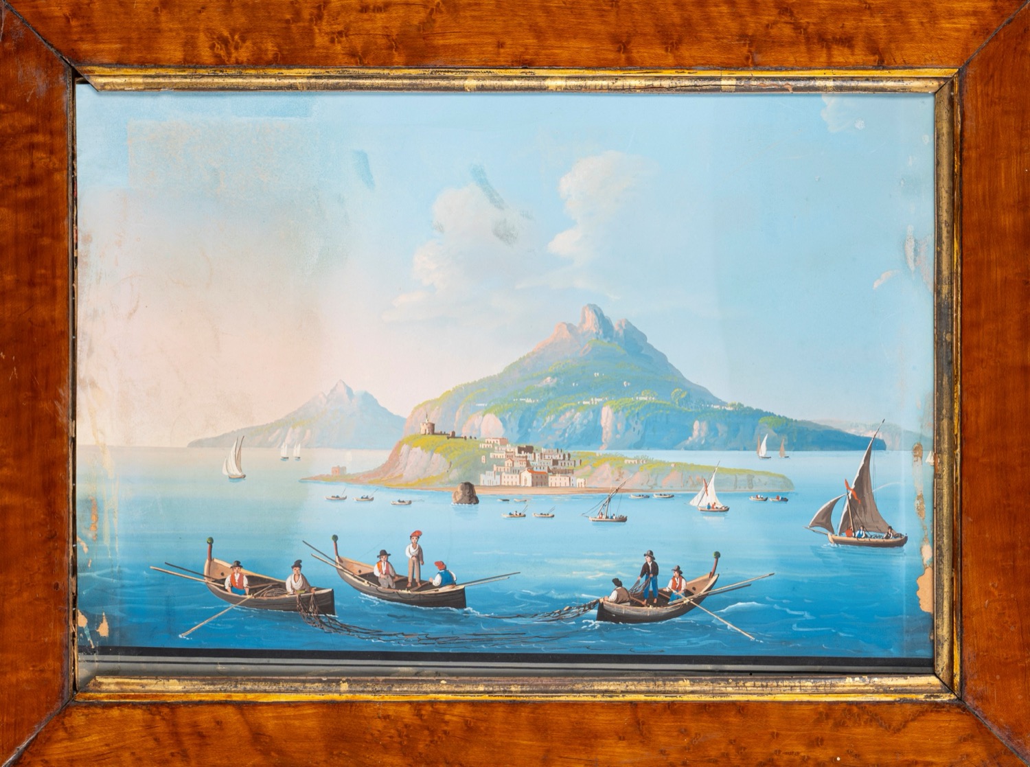 Due gouaches raffiguranti vedute del Golfo di Napoli