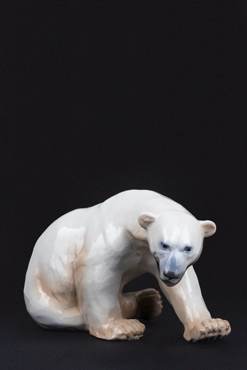 Lotto composto da due sculture in porcellana raffiguranti orso polare e scimmia