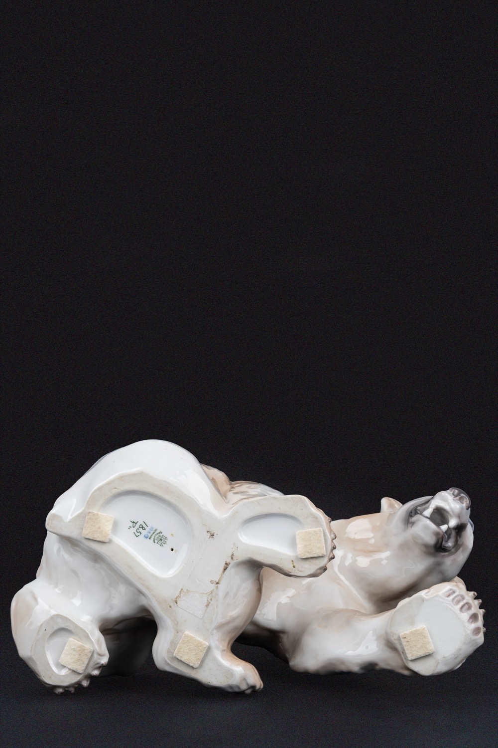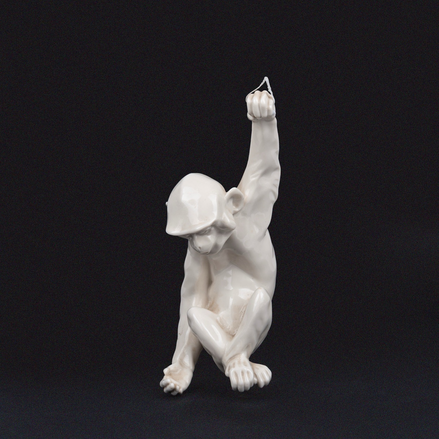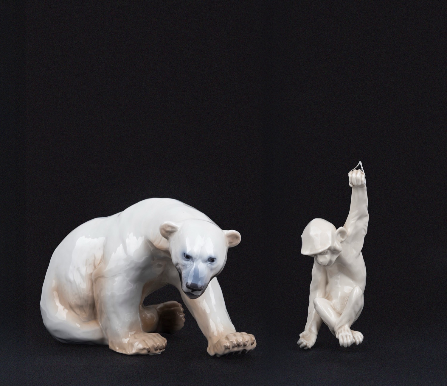 Lot 218 | Lotto composto da due sculture in porcellana raffiguranti orso polare e scimmia