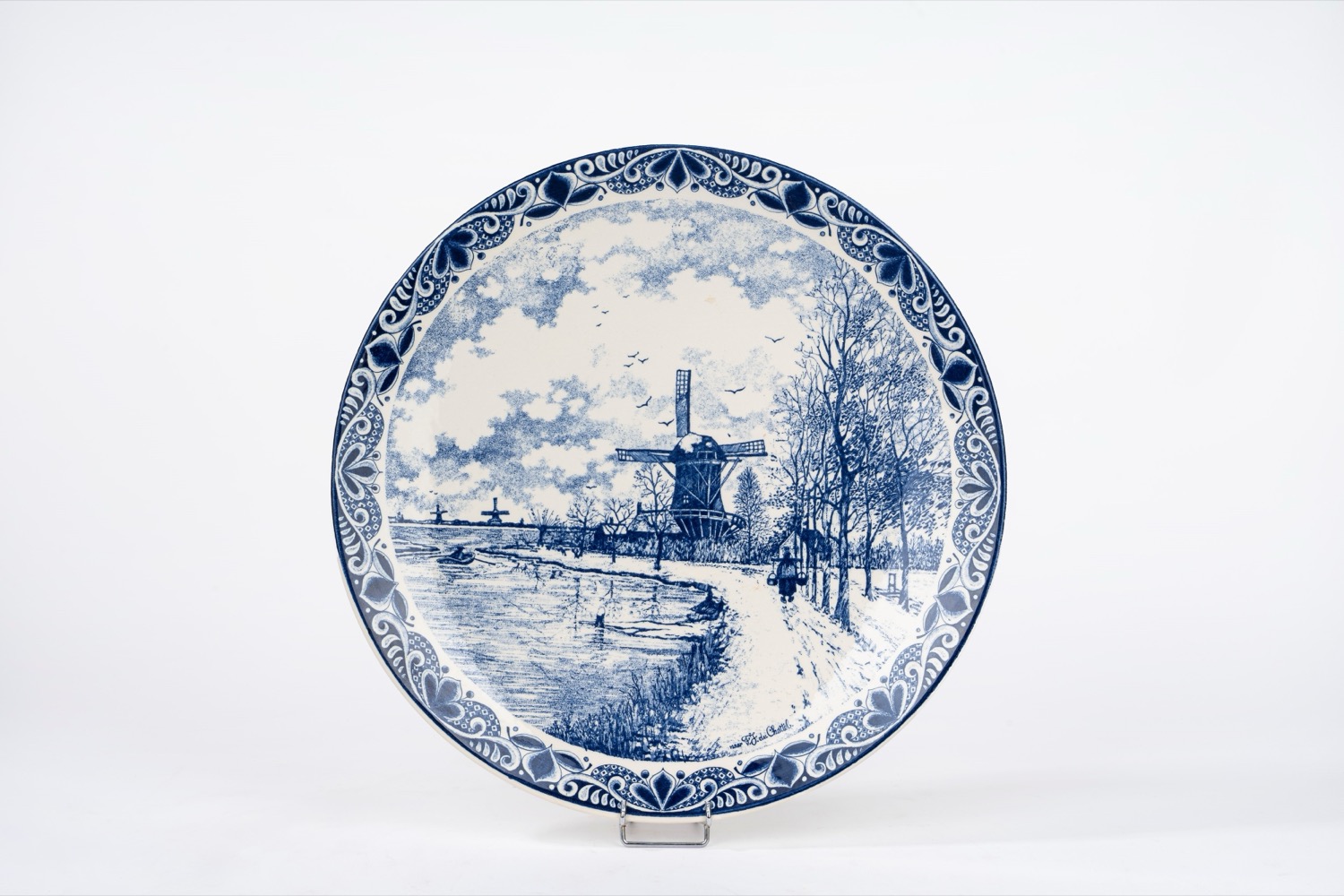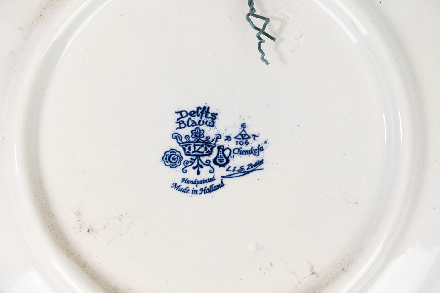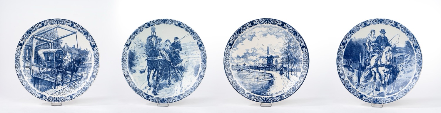 Quattro piatti maiolica bianca e blu, manifattura di Delft, secolo XX