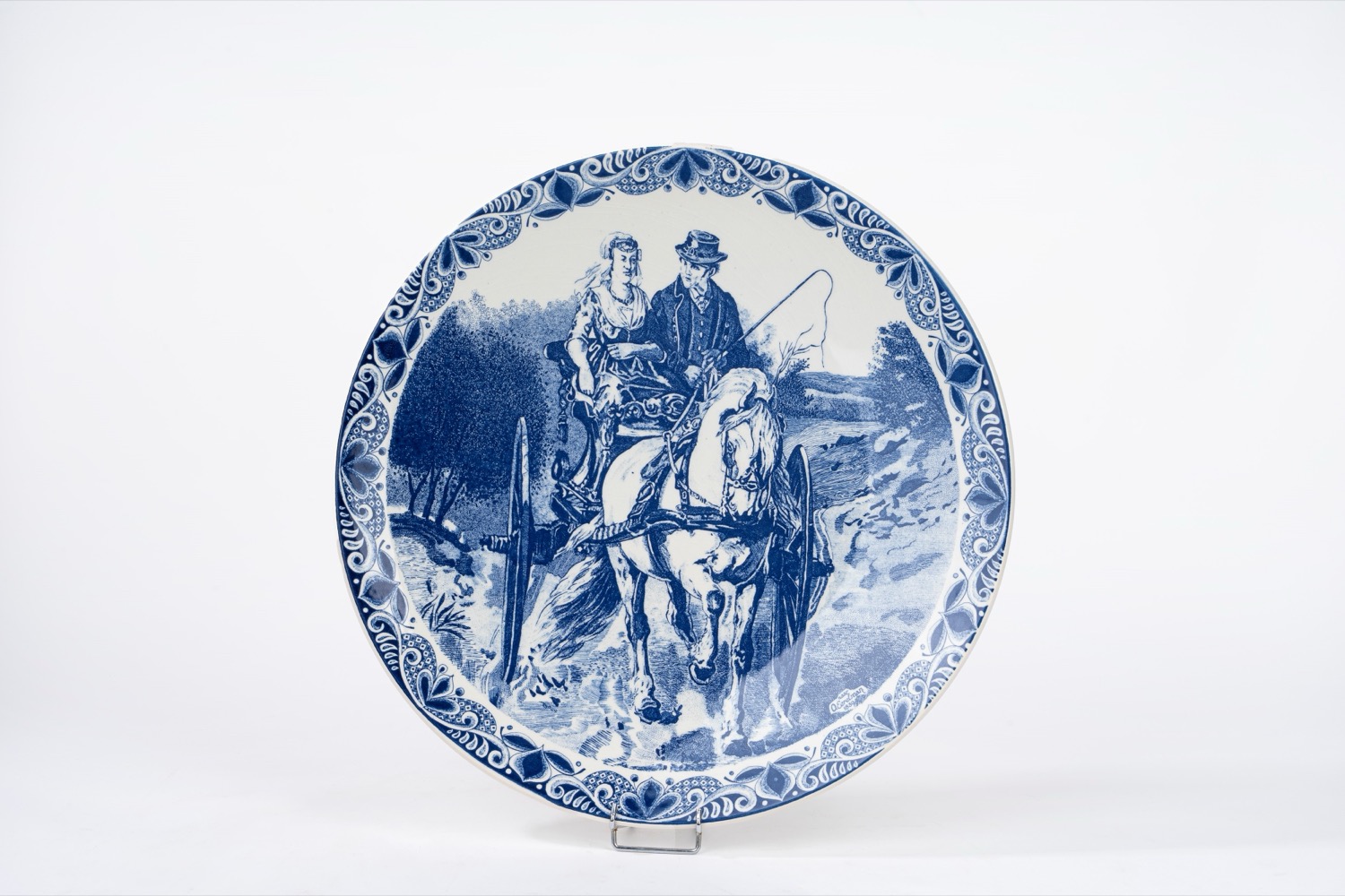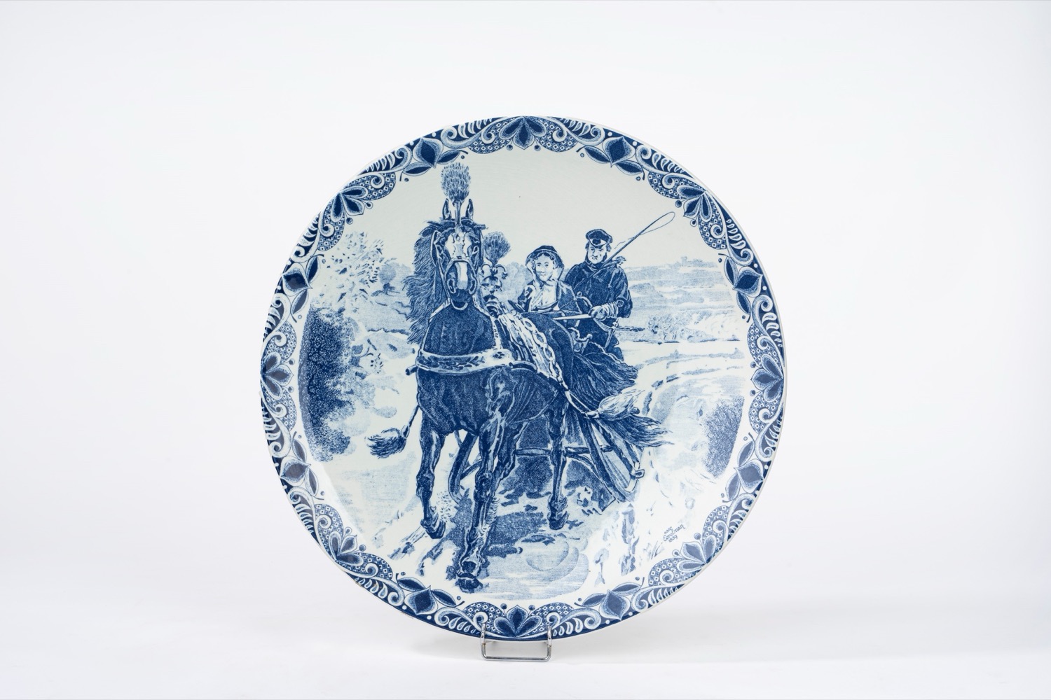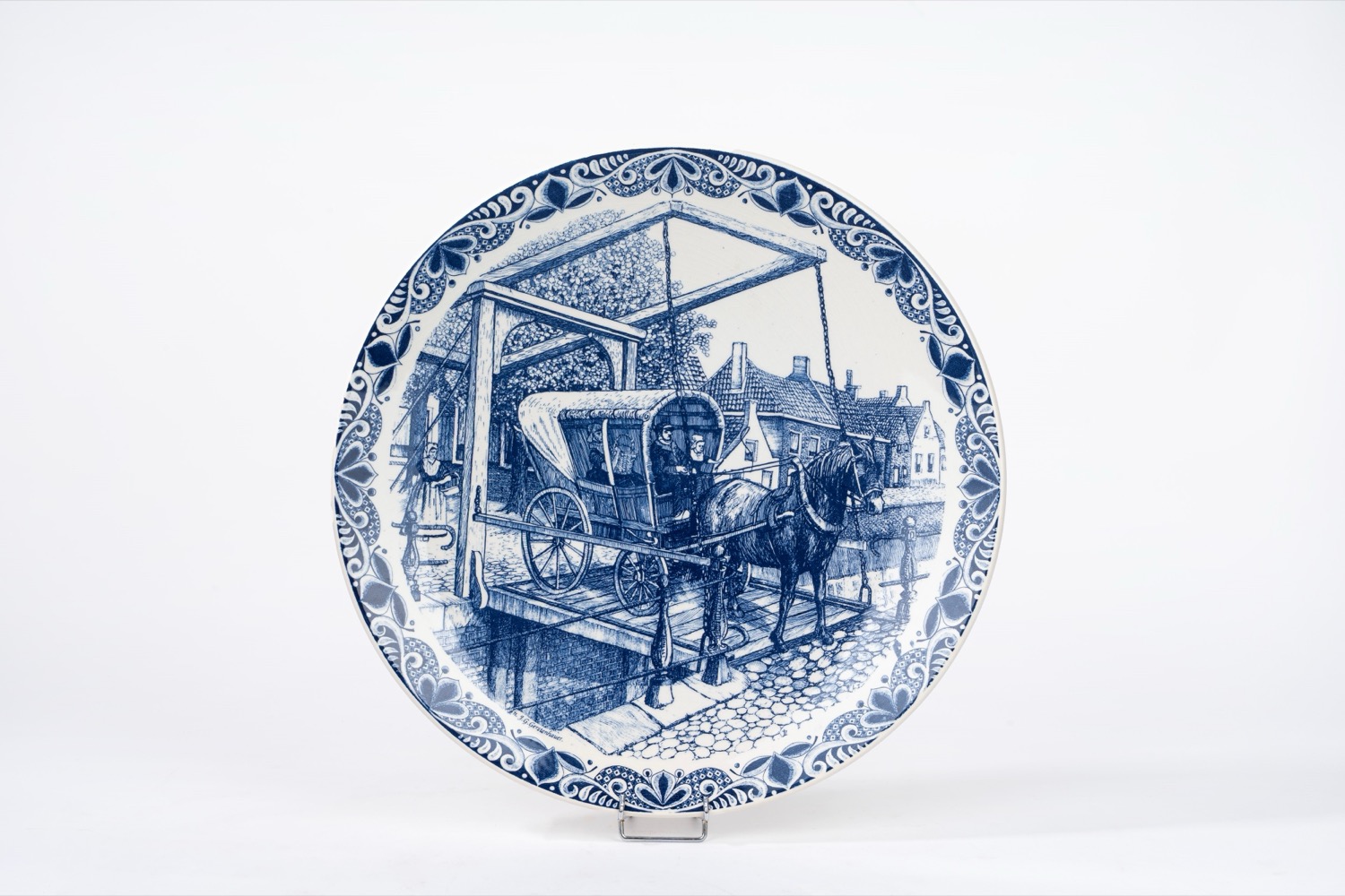 Quattro piatti maiolica bianca e blu, manifattura di Delft, secolo XX