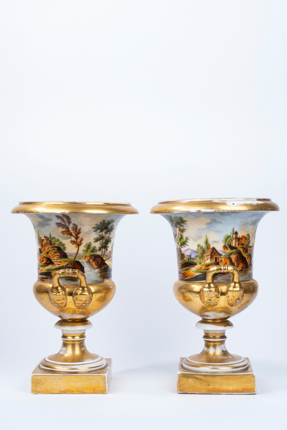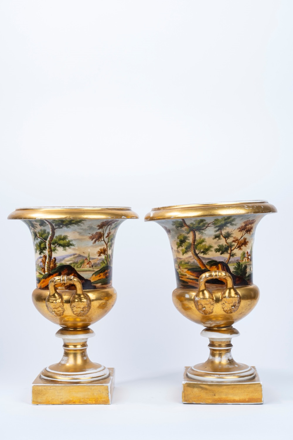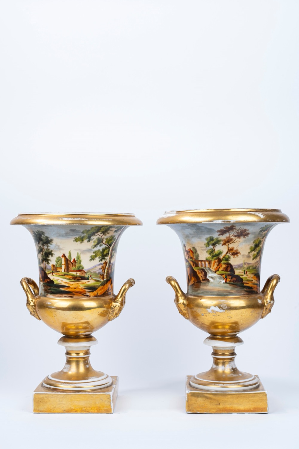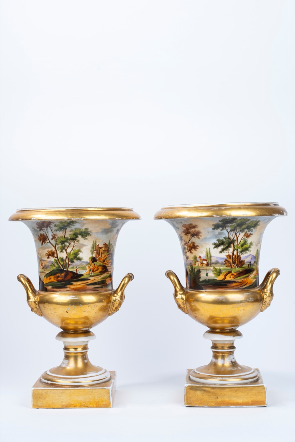 Coppia di vasi in porcellana policroma e oro, Francia secolo XIX