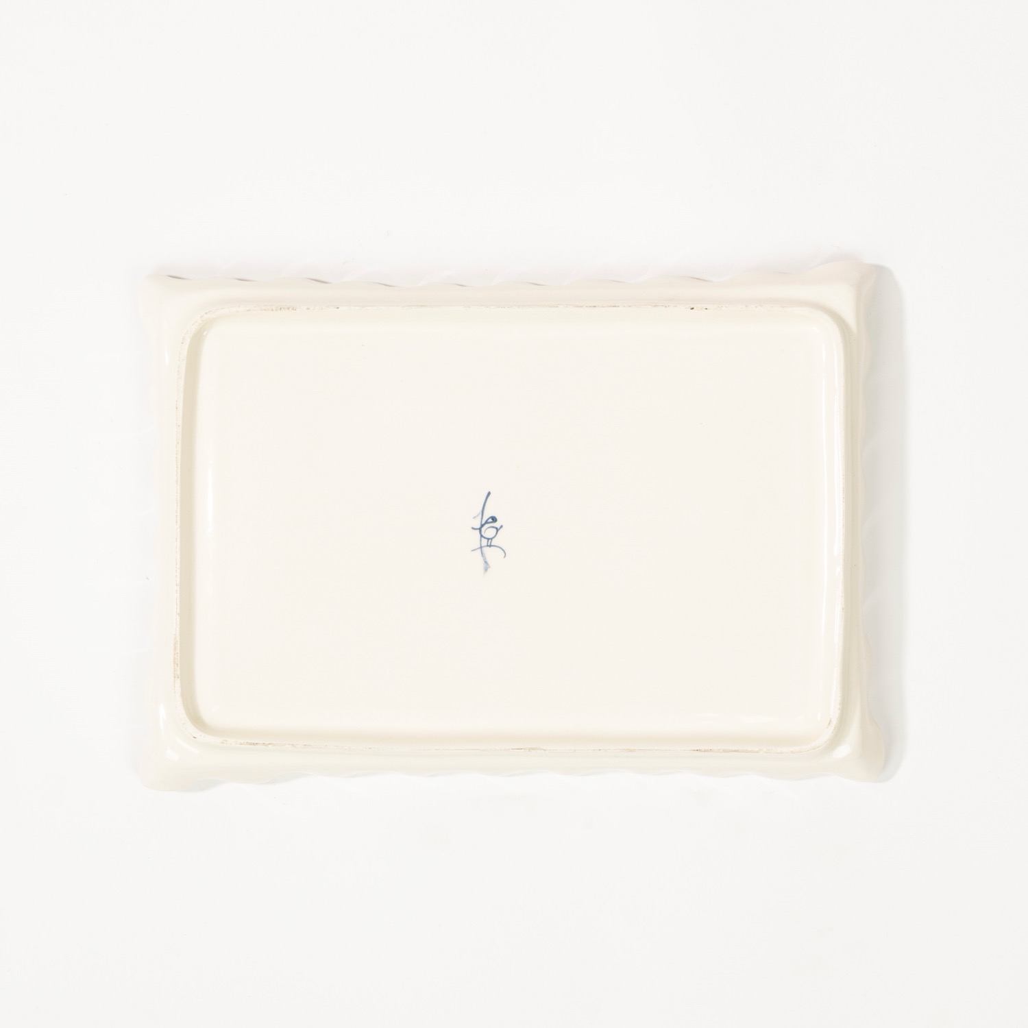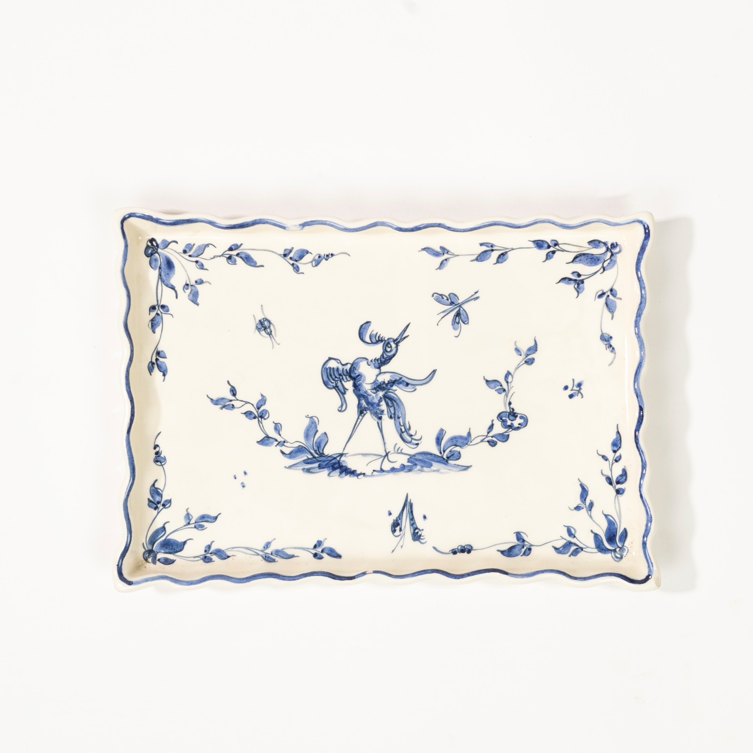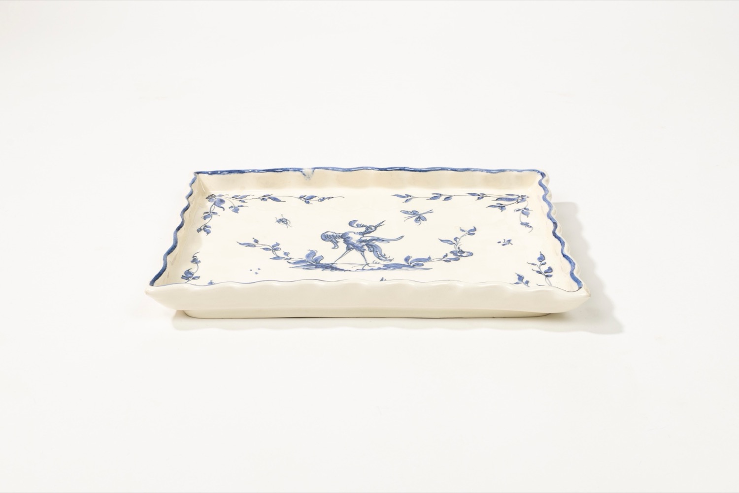 Vassoietto in porcellana bianca con decoro monocromo blu, manifattura Den Haag, Olanda