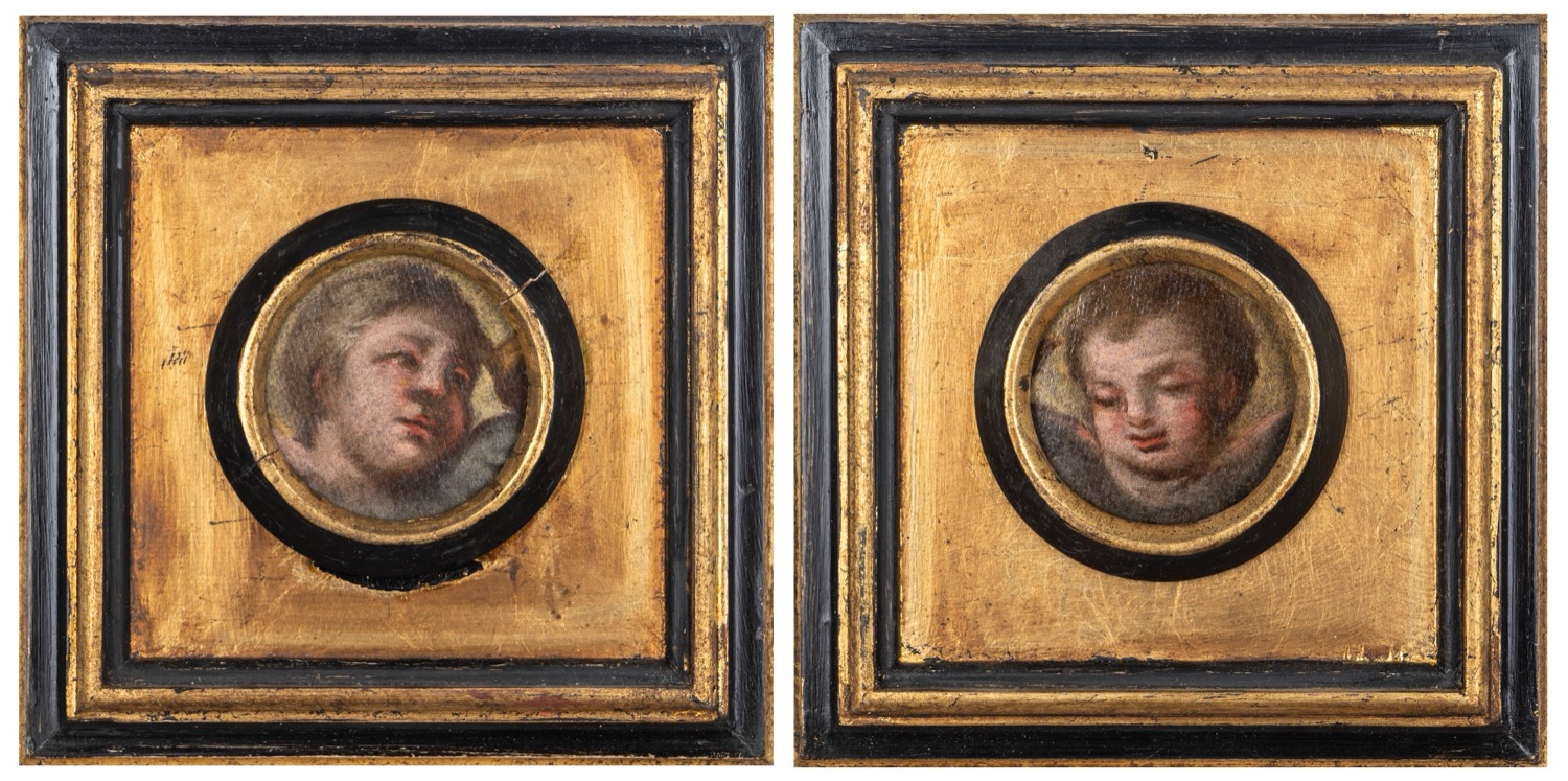 Scuola italiana, secolo XVIII - Due teste di cherubini (frammenti)