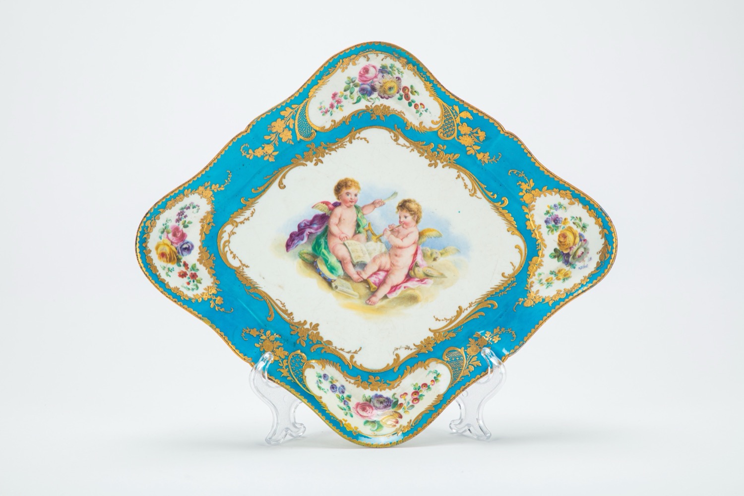 Piatto a losanga con bordo mistilineo in porcellana. Manifattura di Sèvres, probabilmente 1750 circa